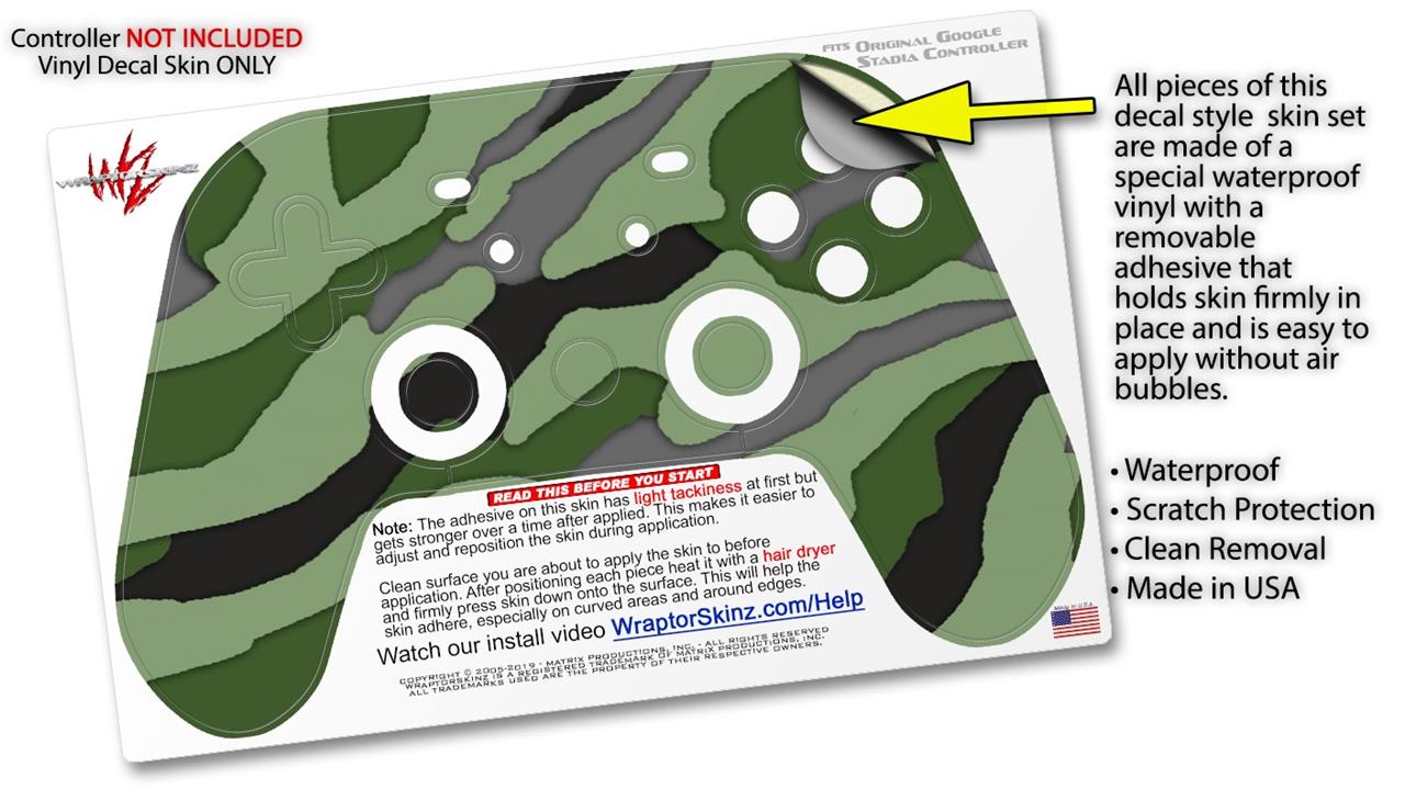 Skin Decal Wrap works with Original Google Stadia Controller Camouflage Green Skin Only CONTROLLER NOT INCLUDED