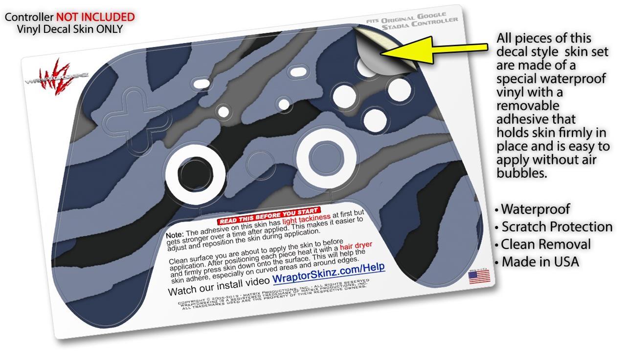 Skin Decal Wrap works with Original Google Stadia Controller Camouflage Blue Skin Only CONTROLLER NOT INCLUDED
