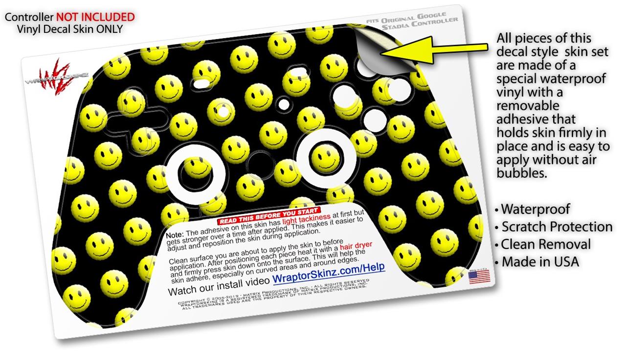 Skin Decal Wrap works with Original Google Stadia Controller Smileys on Black Skin Only CONTROLLER NOT INCLUDED