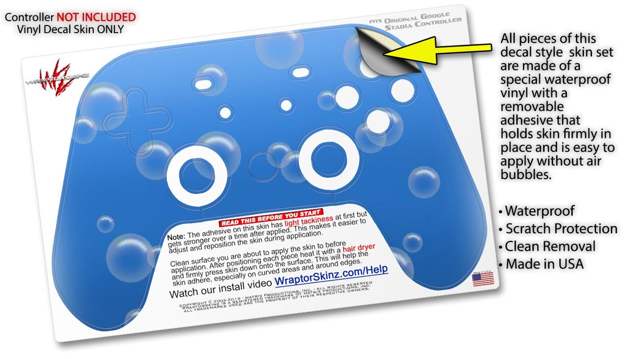 Skin Decal Wrap works with Original Google Stadia Controller Bubbles Blue Skin Only CONTROLLER NOT INCLUDED