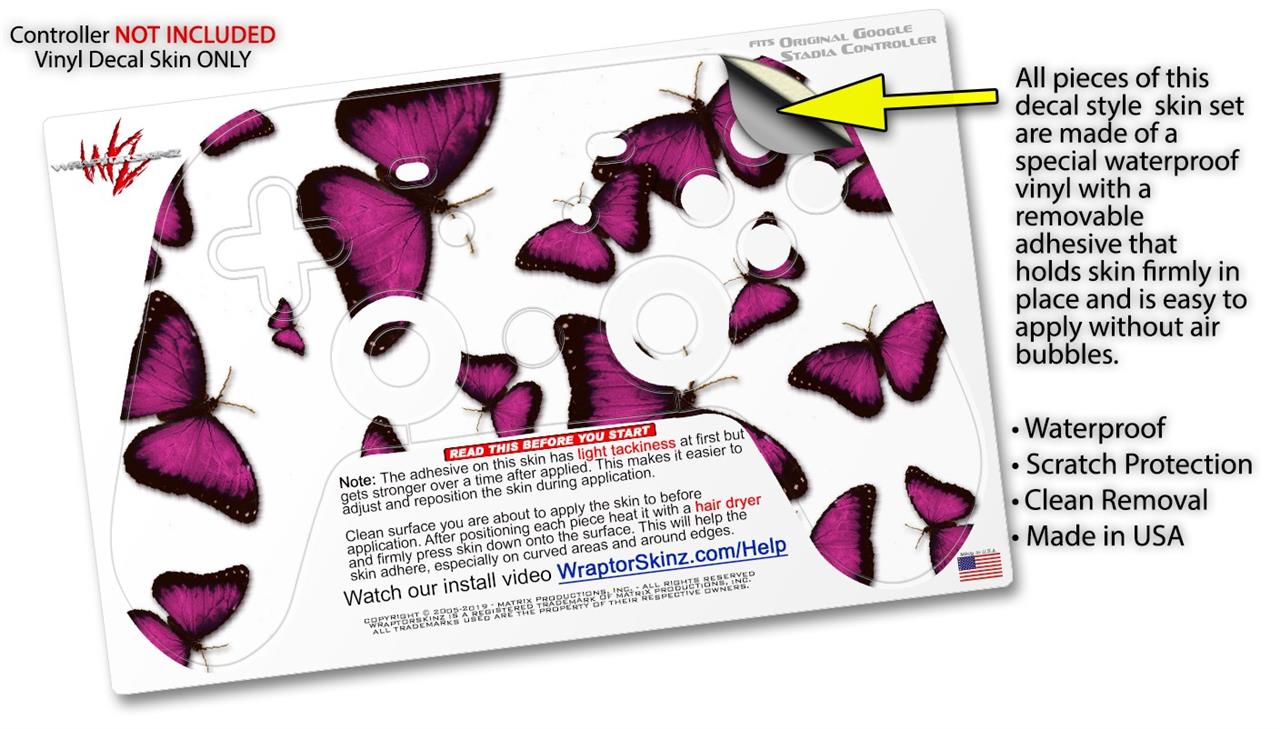 Skin Decal Wrap works with Original Google Stadia Controller Butterflies Purple Skin Only CONTROLLER NOT INCLUDED