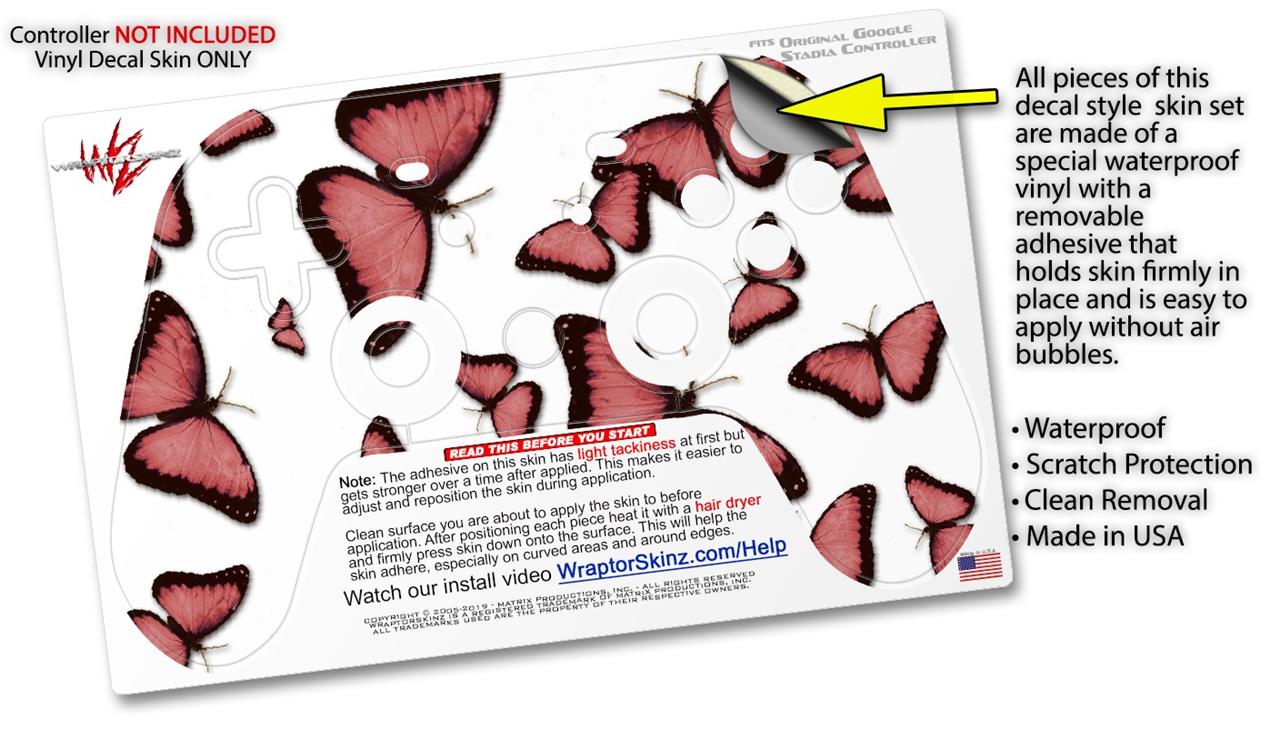 Skin Decal Wrap works with Original Google Stadia Controller Butterflies Pink Skin Only CONTROLLER NOT INCLUDED