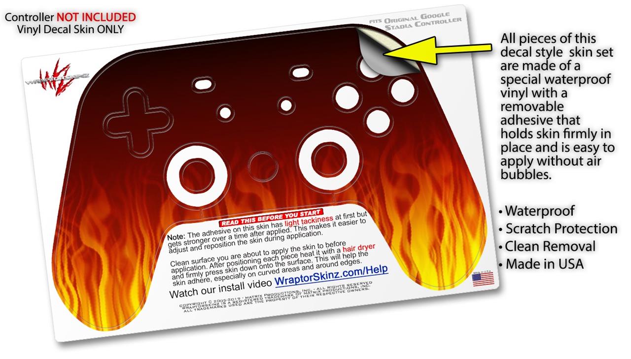 Skin Decal Wrap works with Original Google Stadia Controller Fire on Black Skin Only CONTROLLER NOT INCLUDED