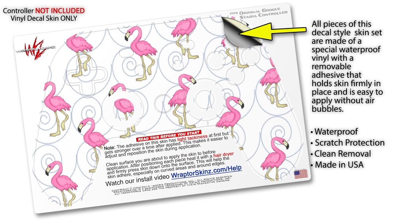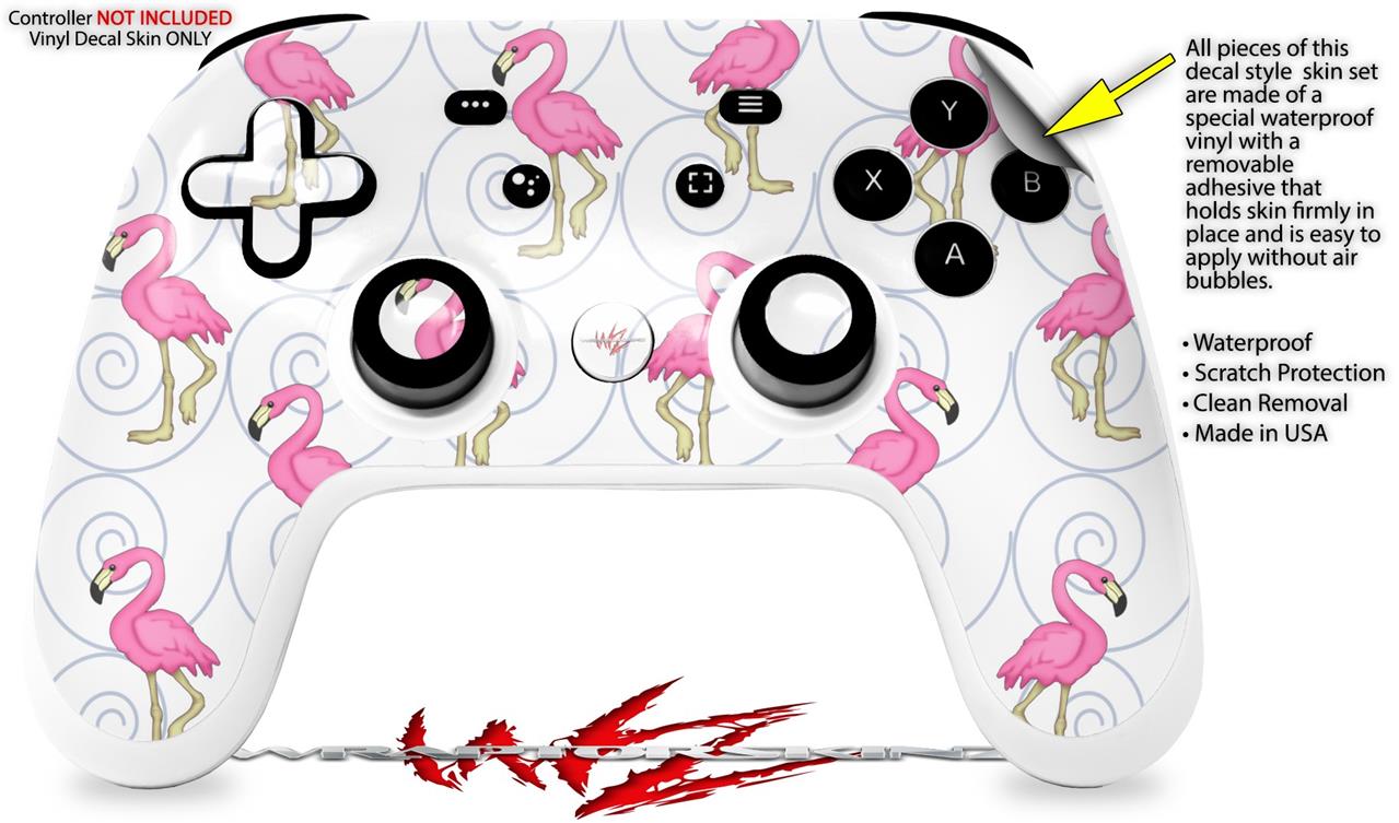 Skin Decal Wrap works with Original Google Stadia Controller Flamingos on White Skin Only CONTROLLER NOT INCLUDED