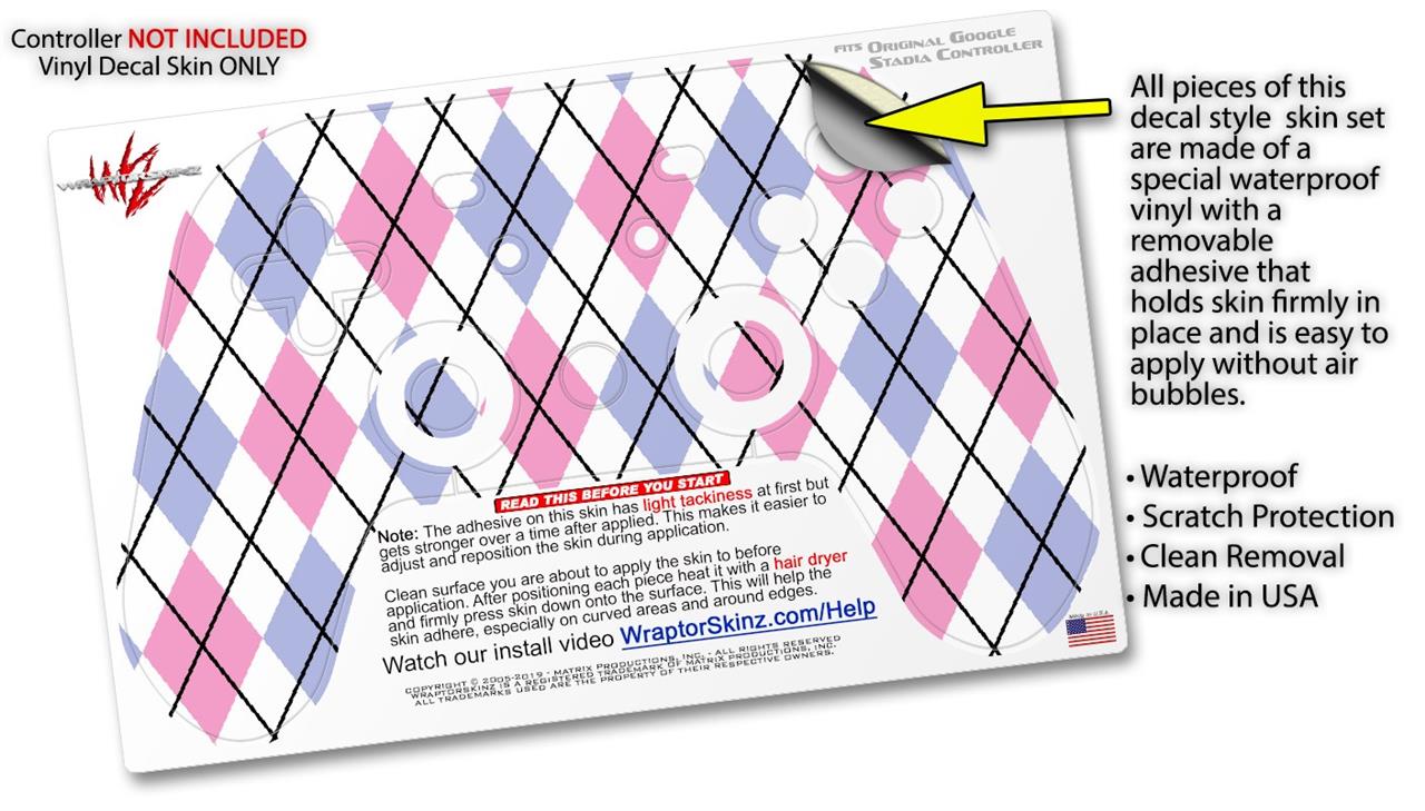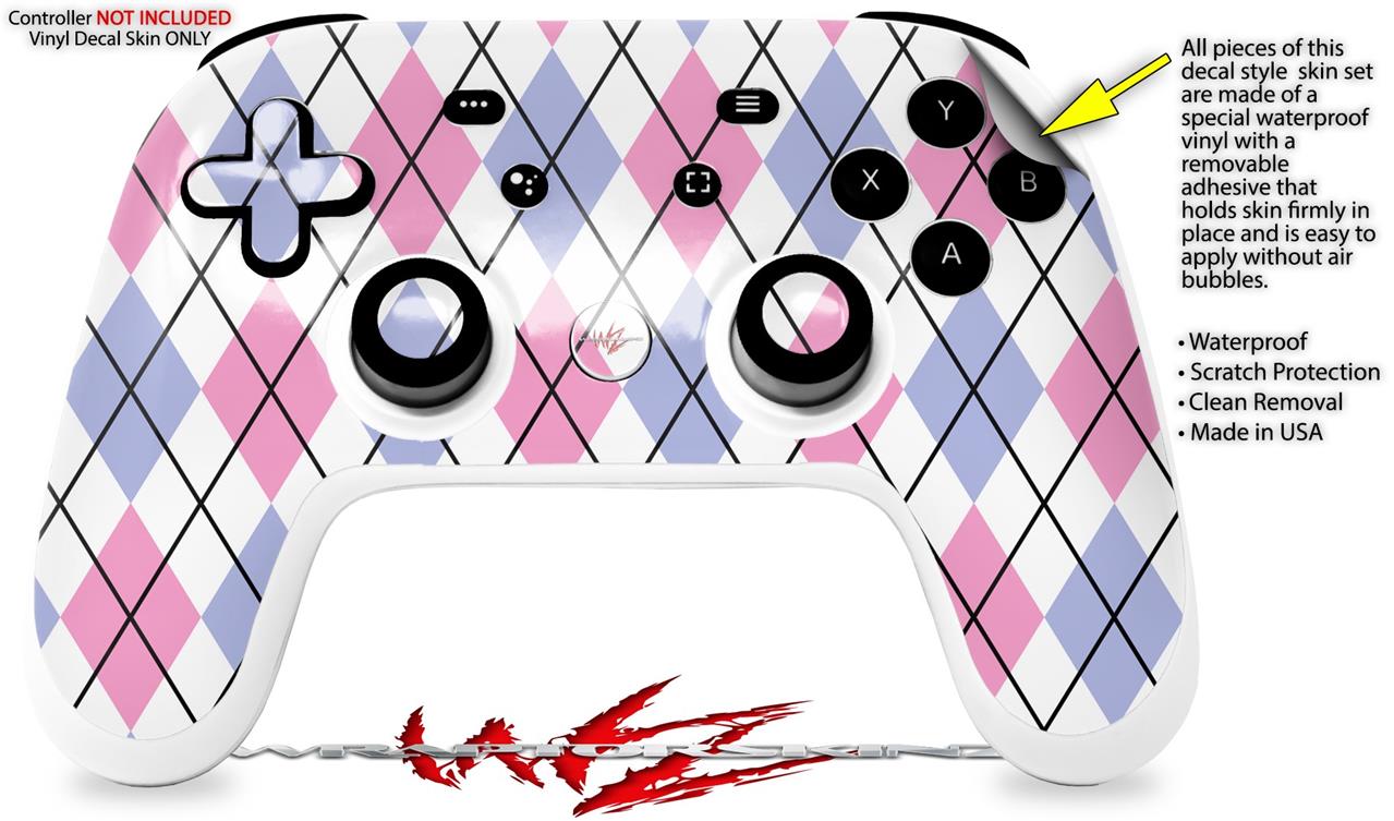 Skin Decal Wrap works with Original Google Stadia Controller Argyle Pink and Blue Skin Only CONTROLLER NOT INCLUDED