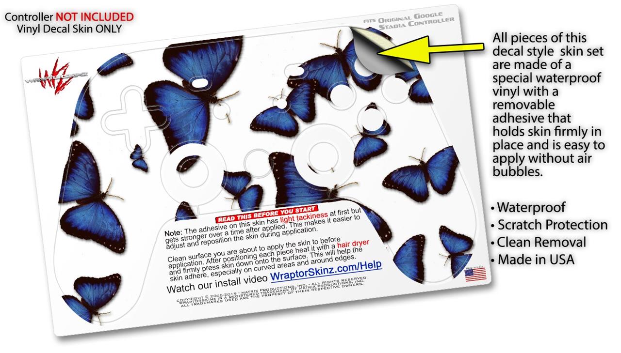Skin Decal Wrap works with Original Google Stadia Controller Butterflies Blue Skin Only CONTROLLER NOT INCLUDED
