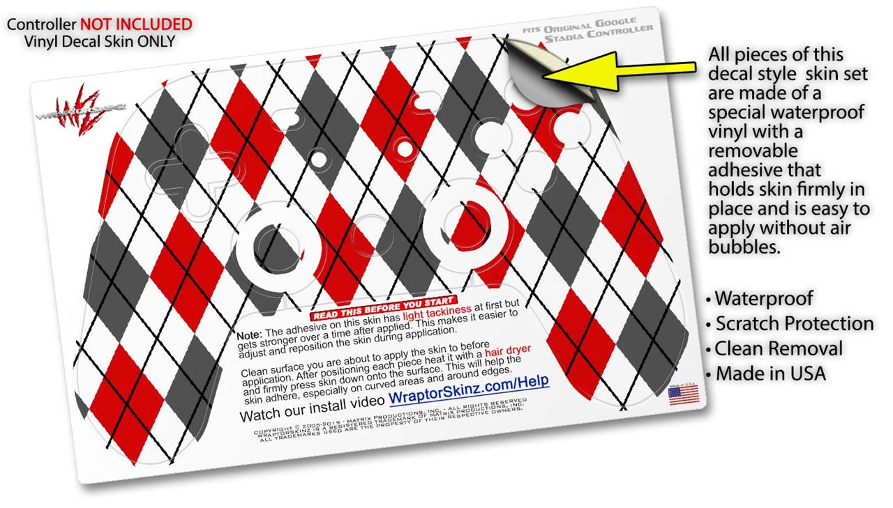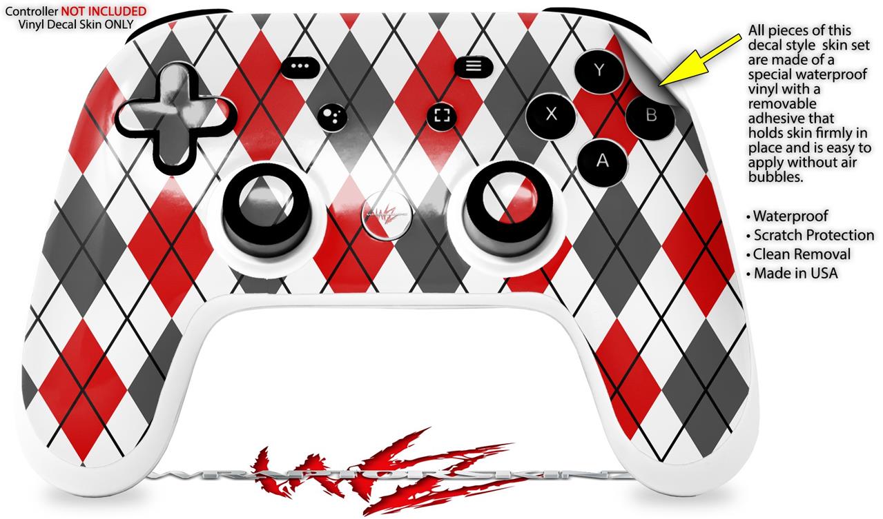 Skin Decal Wrap works with Original Google Stadia Controller Argyle Red and Gray Skin Only CONTROLLER NOT INCLUDED