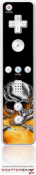 Wii Remote Controller Skin - Chrome Skull on Fire