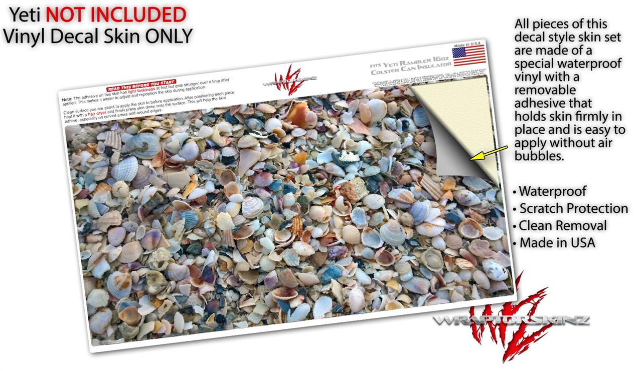 WraptorSkinz Skin Decal Wrap compatible with Yeti 16oz Tal Colster Can Cooler Insulator Sea Shells (COOLER NOT INCLUDED)