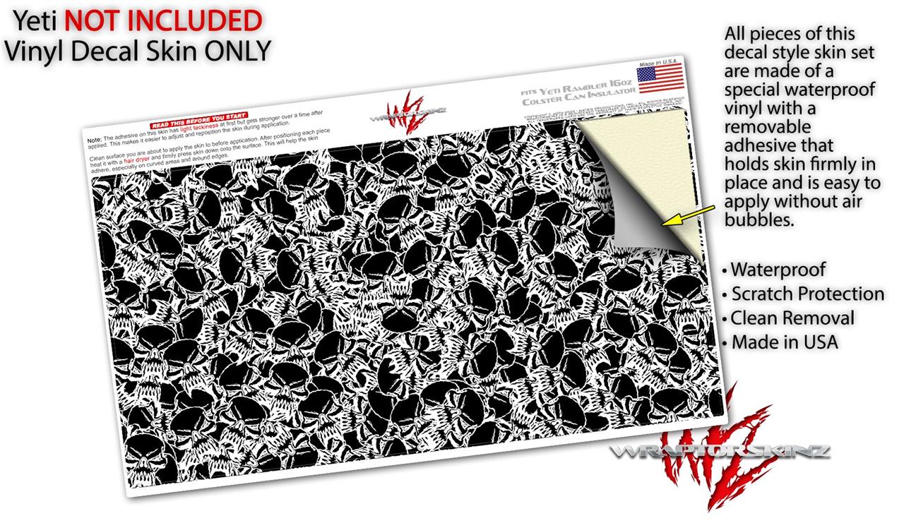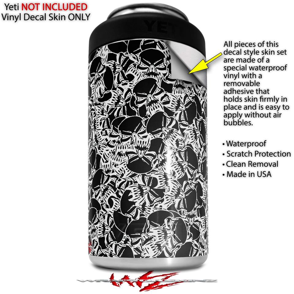 WraptorSkinz Skin Decal Wrap compatible with Yeti 16oz Tal Colster Can Cooler Insulator Scattered Skulls Black (COOLER NOT INCLUDED)