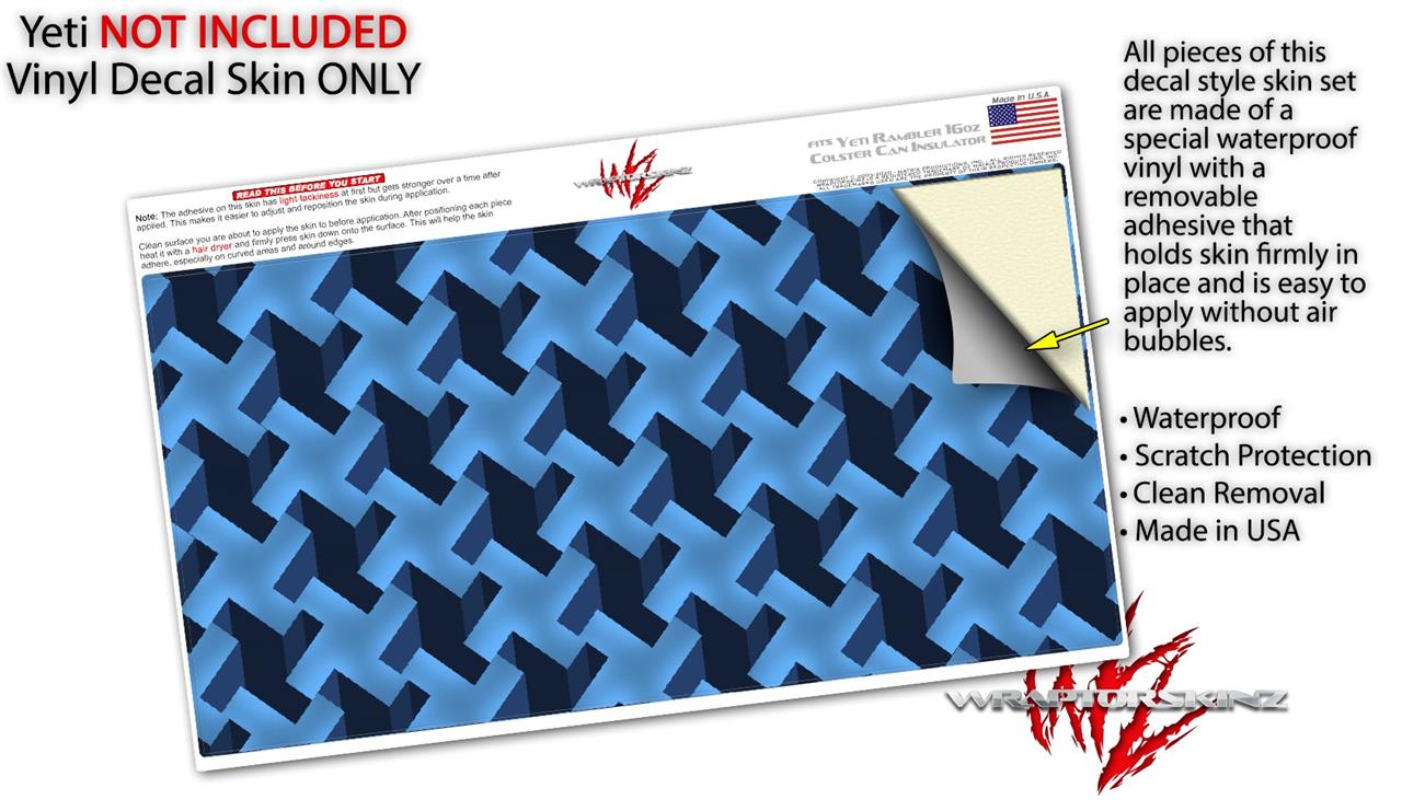 WraptorSkinz Skin Decal Wrap compatible with Yeti 16oz Tal Colster Can Cooler Insulator Retro Houndstooth Blue (COOLER NOT INCLUDED)