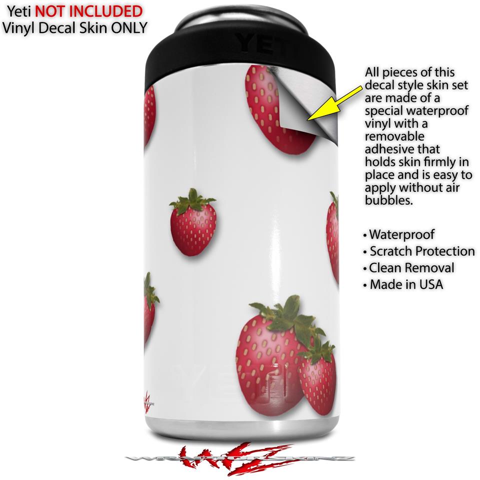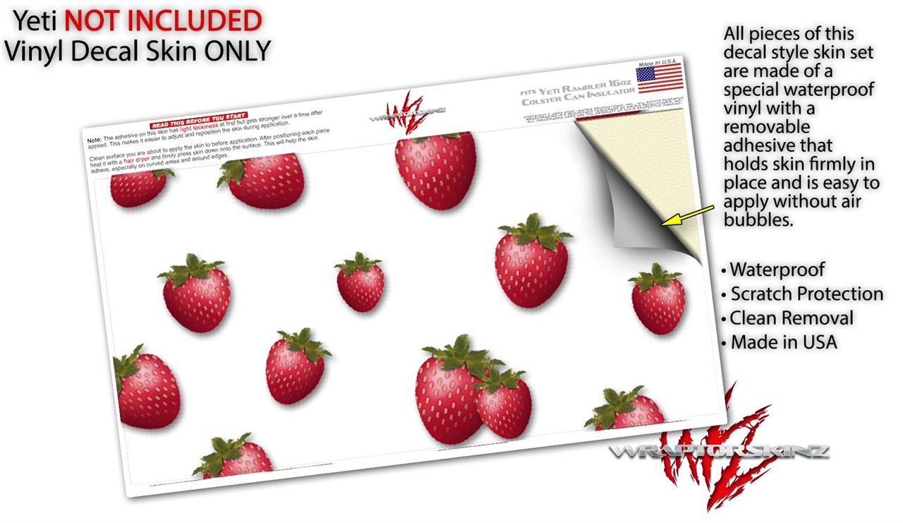 WraptorSkinz Skin Decal Wrap compatible with Yeti 16oz Tal Colster Can Cooler Insulator Strawberries on White (COOLER NOT INCLUDED)