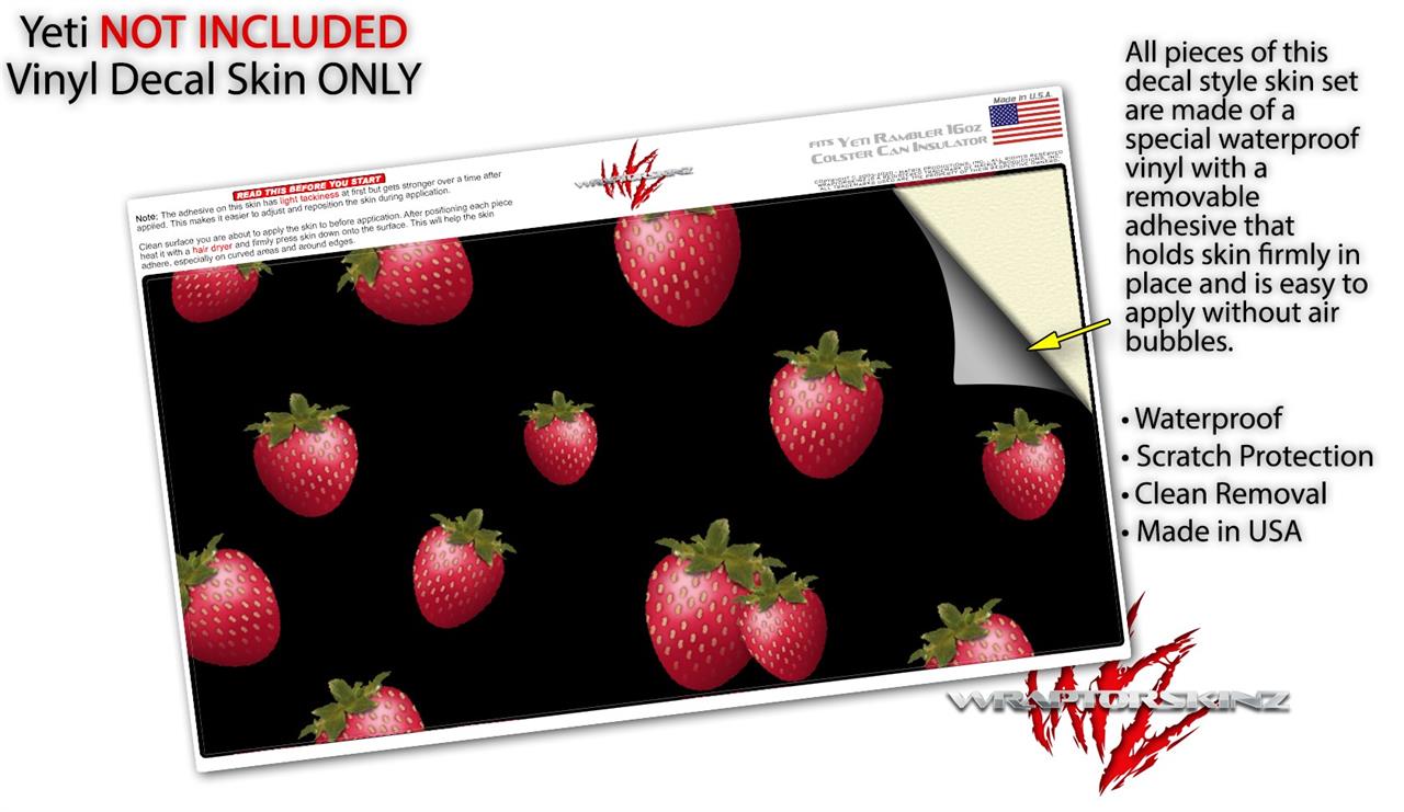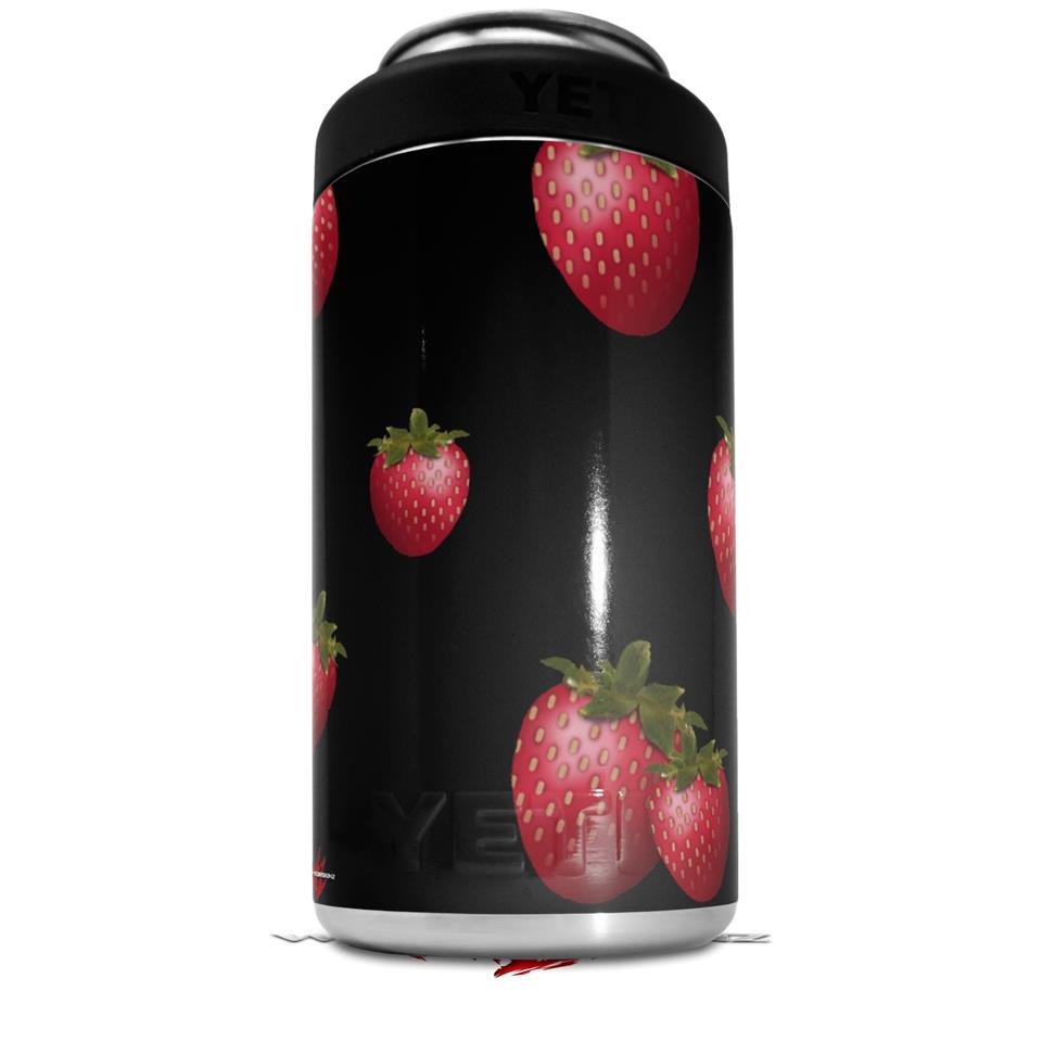 WraptorSkinz Skin Decal Wrap compatible with Yeti 16oz Tal Colster Can Cooler Insulator Strawberries on Black (COOLER NOT INCLUDED)