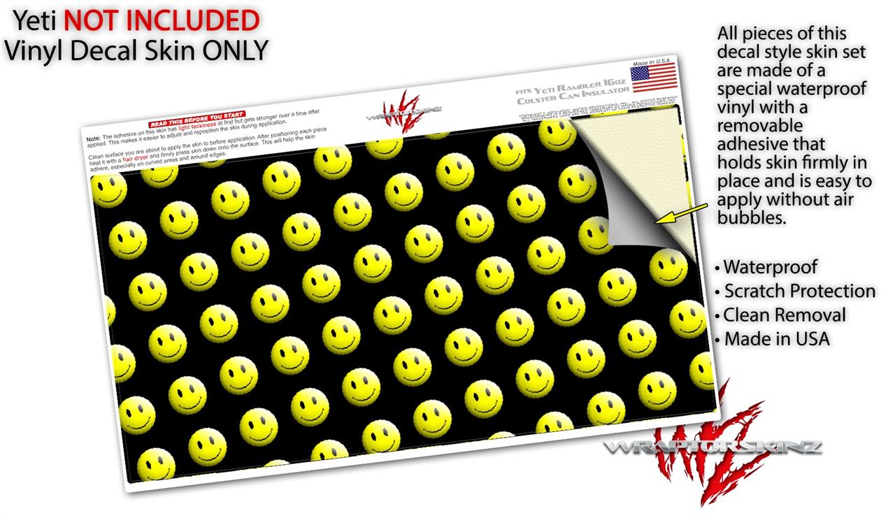 WraptorSkinz Skin Decal Wrap compatible with Yeti 16oz Tal Colster Can Cooler Insulator Smileys on Black (COOLER NOT INCLUDED)