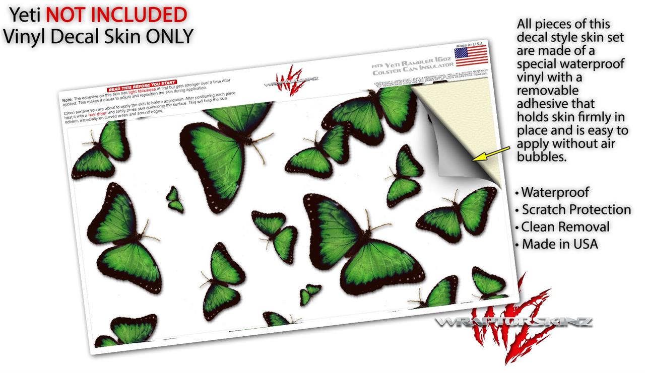 WraptorSkinz Skin Decal Wrap compatible with Yeti 16oz Tal Colster Can Cooler Insulator Butterflies Green (COOLER NOT INCLUDED)