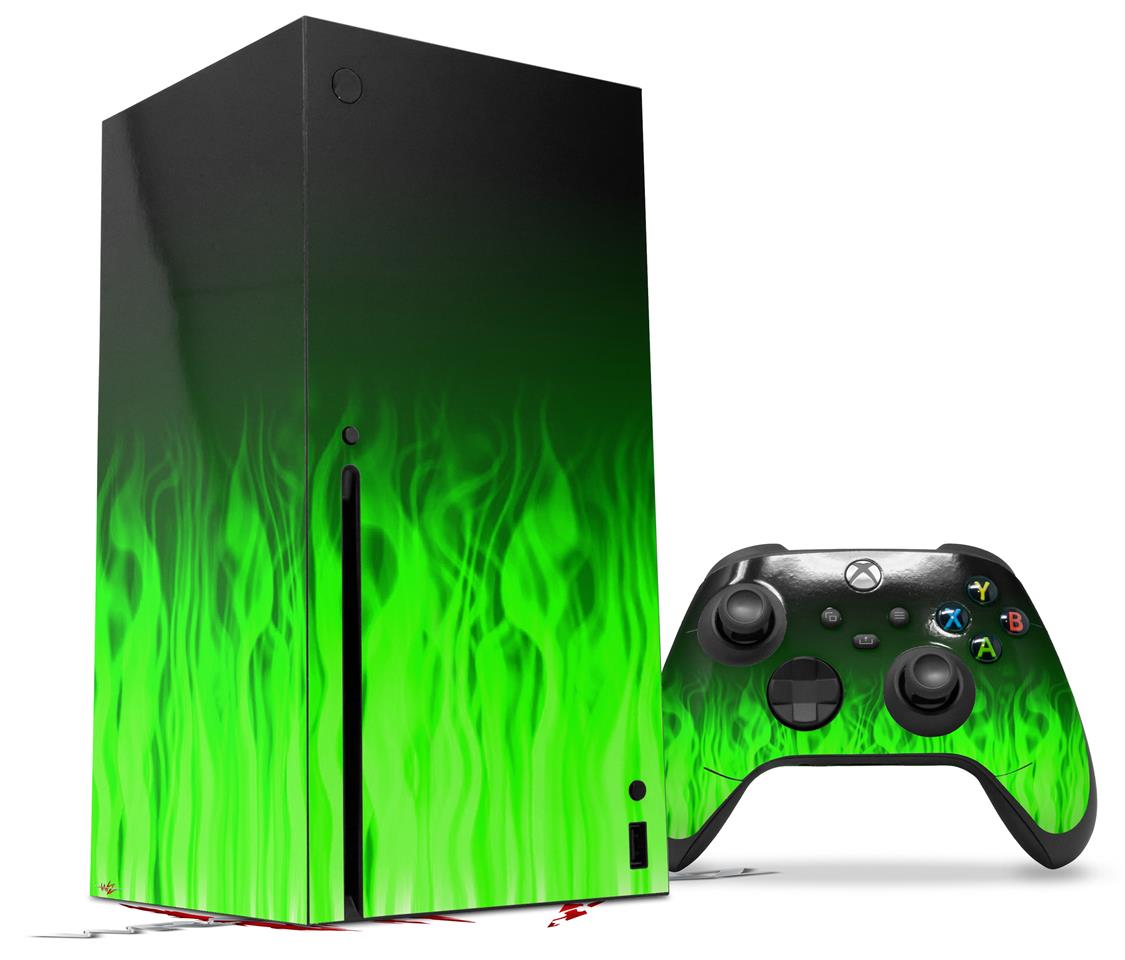 WraptorSkinz Skin Wrap compatible with the 2020 XBOX Series X Console and Controller Fire Green (XBOX NOT INCLUDED)