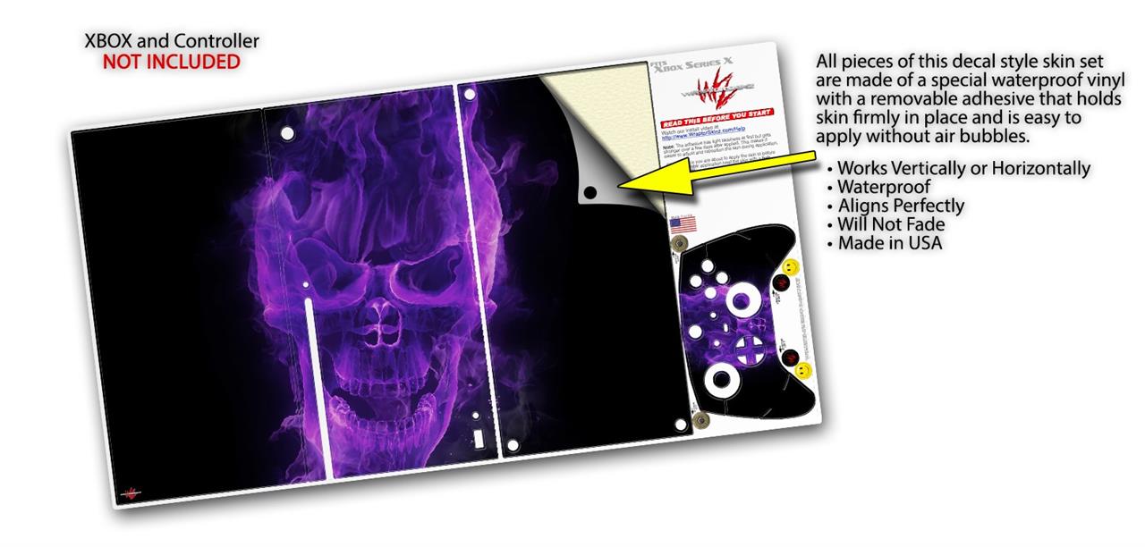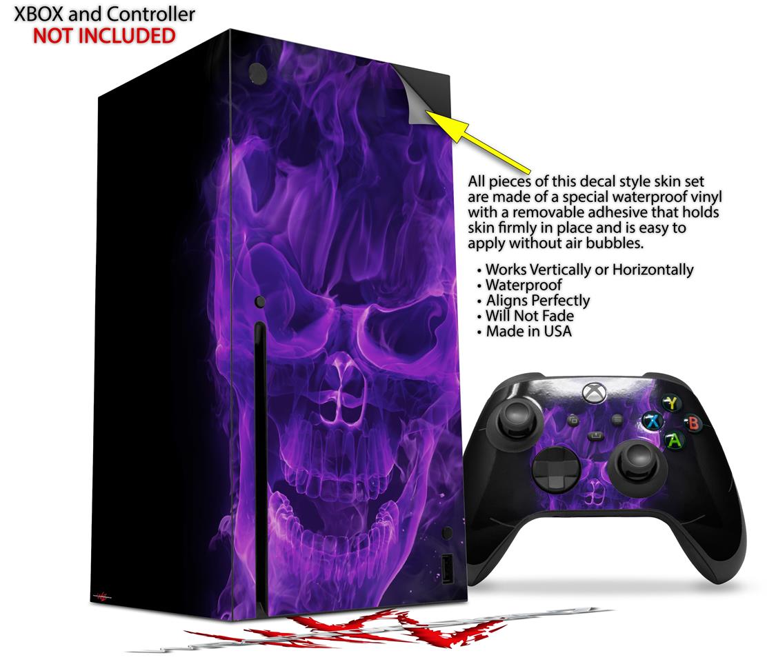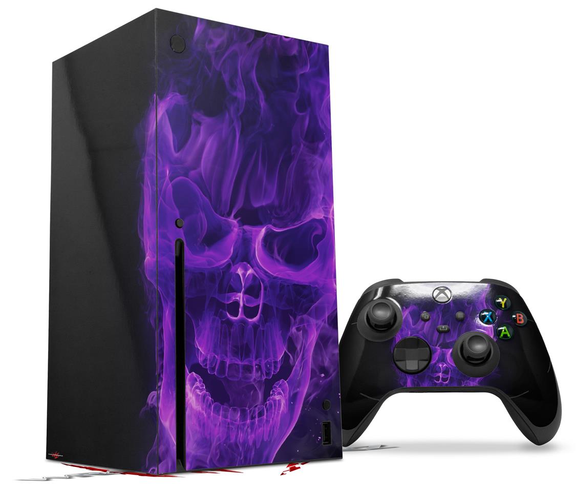 WraptorSkinz Skin Wrap compatible with the 2020 XBOX Series X Console and Controller Flaming Fire Skull Purple (XBOX NOT INCLUDED)
