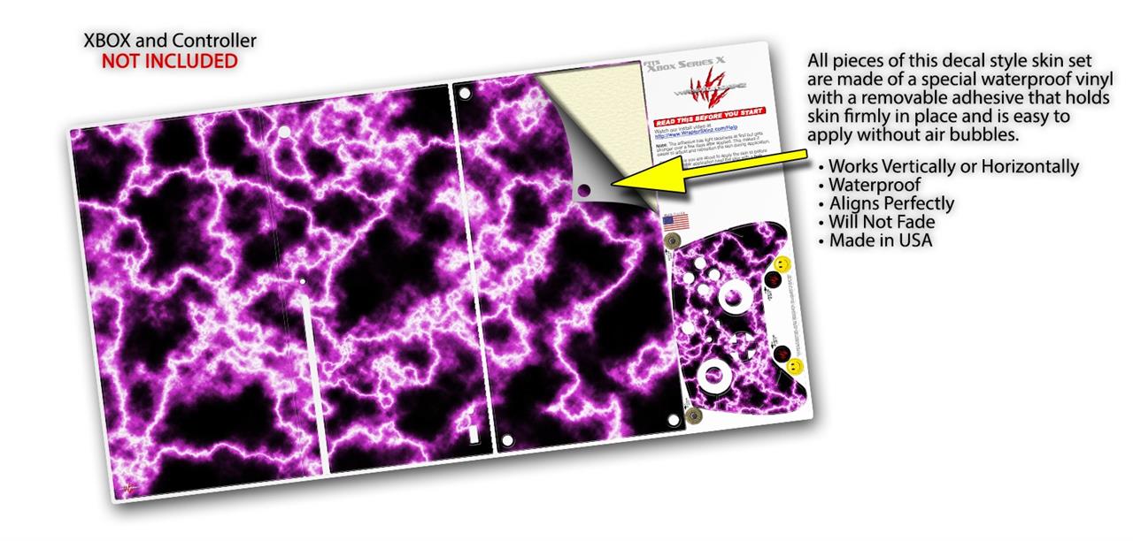 WraptorSkinz® skin wraps for the XBOX Series X gaming console and controller released November 2020 are printed using superb photo quality designs and vibrant colors printed with special fade resistant inks that last even in direct sun for years. WraptorSkinz are a composite of two layers of commercial grade materials. The bottom layer is a soft, flexible vinyl with a special removable adhesive that is easily positioned, applied without air bubbles. Next, we print the bottom layer with UV protected, fade resistant inks that deliver superb photo quality designs in vibrant colors. Last, we bond a professional grade laminate over the entire skin adding a glossy protective finish. This product is not affiliated with or endorsed by Microsoft or the XBOX brand.