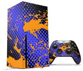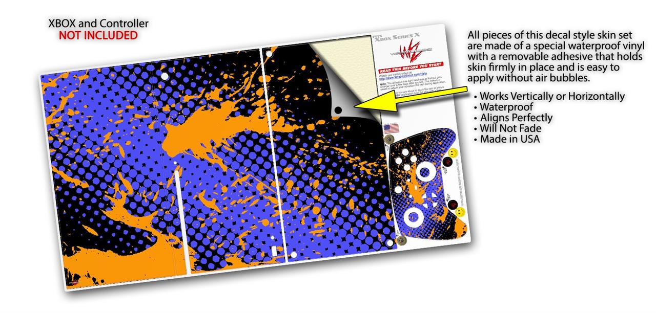 WraptorSkinz Skin Wrap compatible with the 2020 XBOX Series X Console and Controller Halftone Splatter Orange Blue (XBOX NOT INCLUDED)