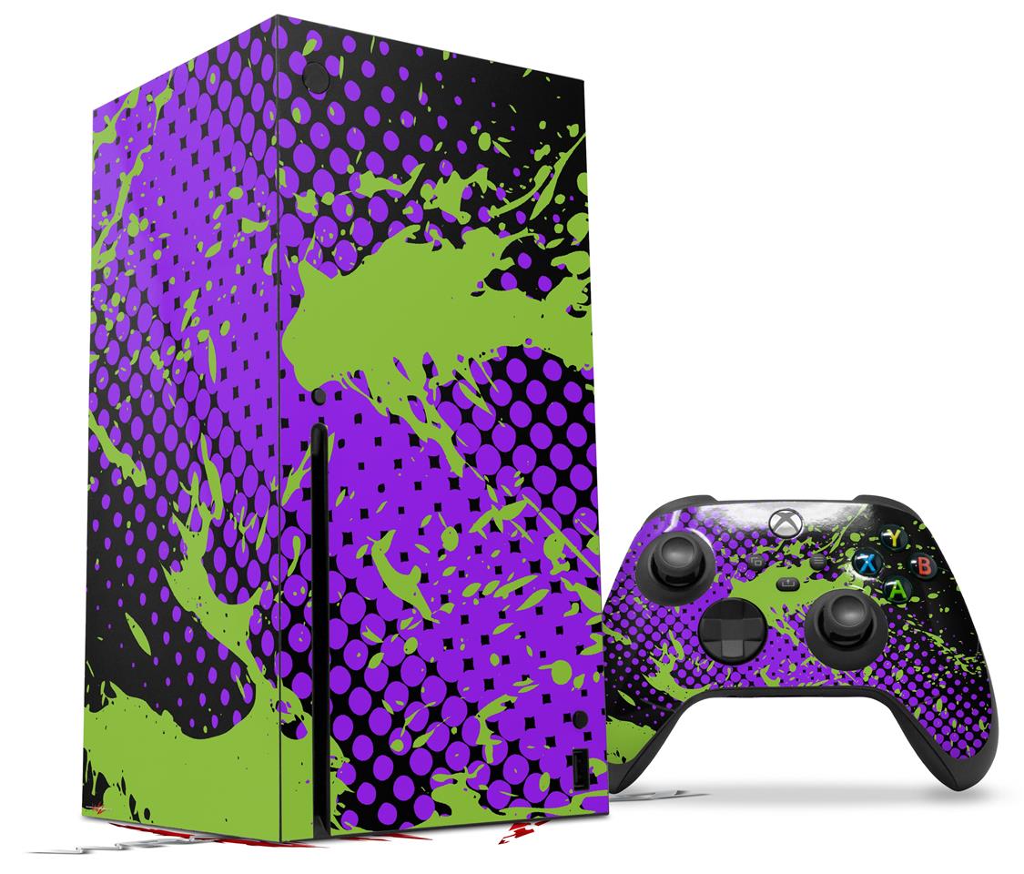 WraptorSkinz Skin Wrap compatible with the 2020 XBOX Series X Console and Controller Halftone Splatter Green Purple (XBOX NOT INCLUDED)