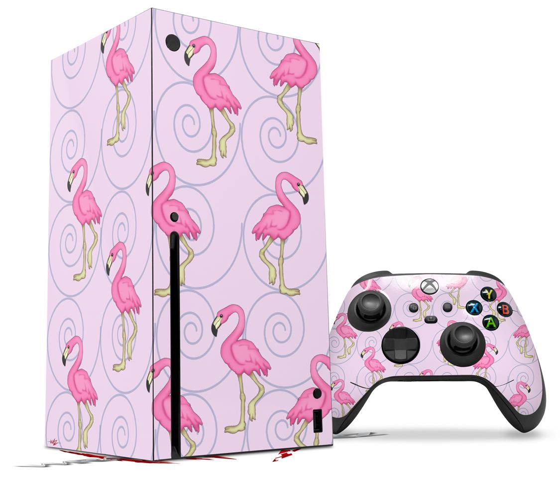 WraptorSkinz Skin Wrap compatible with the 2020 XBOX Series X Console and Controller Flamingos on Pink (XBOX NOT INCLUDED)