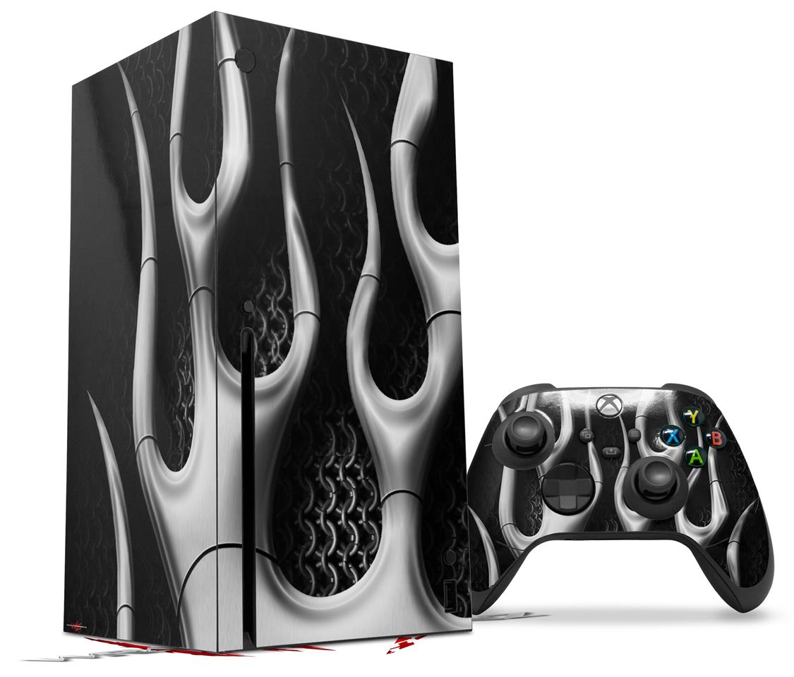 WraptorSkinz Skin Wrap compatible with the 2020 XBOX Series X Console and Controller Metal Flames Chrome (XBOX NOT INCLUDED)
