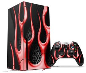 WraptorSkinz Skin Wrap compatible with the 2020 XBOX Series X Console and Controller Metal Flames Red (XBOX NOT INCLUDED)