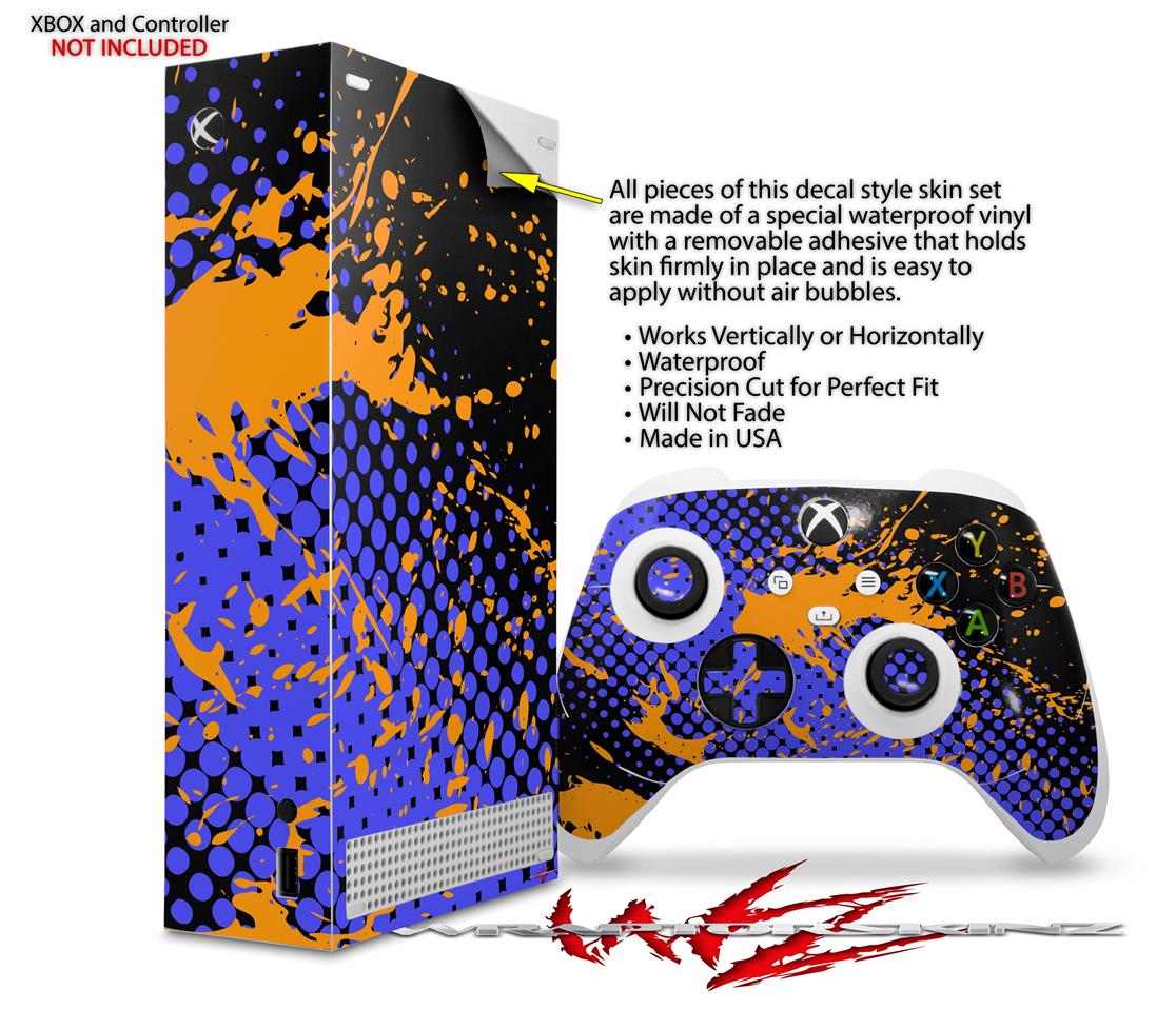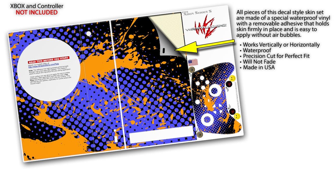 WraptorSkinz Skin Wrap compatible with the 2020 XBOX Series S Console and Controller Halftone Splatter Orange Blue (XBOX NOT INCLUDED)
