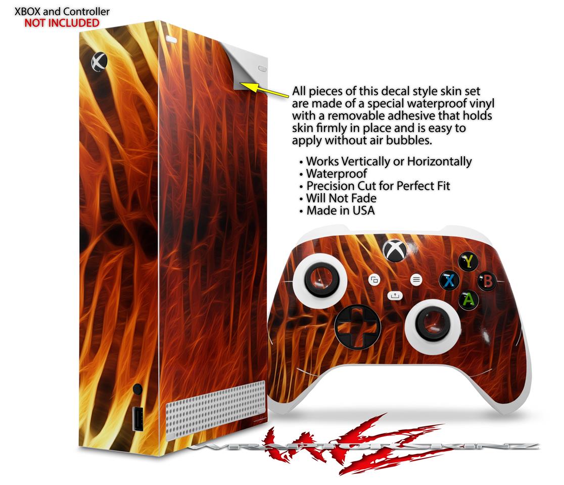 WraptorSkinz® skin wraps for the XBOX Series S gaming console and controller released November 2020 are printed using superb photo quality designs and vibrant colors printed with special fade resistant inks that last even in direct sun for years. WraptorSkinz are a composite of two layers of commercial grade materials. The bottom layer is a soft, flexible vinyl with a special removable adhesive that is easily positioned, applied without air bubbles. Next, we print the bottom layer with UV protected, fade resistant inks that deliver superb photo quality designs in vibrant colors. Last, we bond a professional grade laminate over the entire skin adding a glossy protective finish. This product is not affiliated with or endorsed by Microsoft or the XBOX brand.