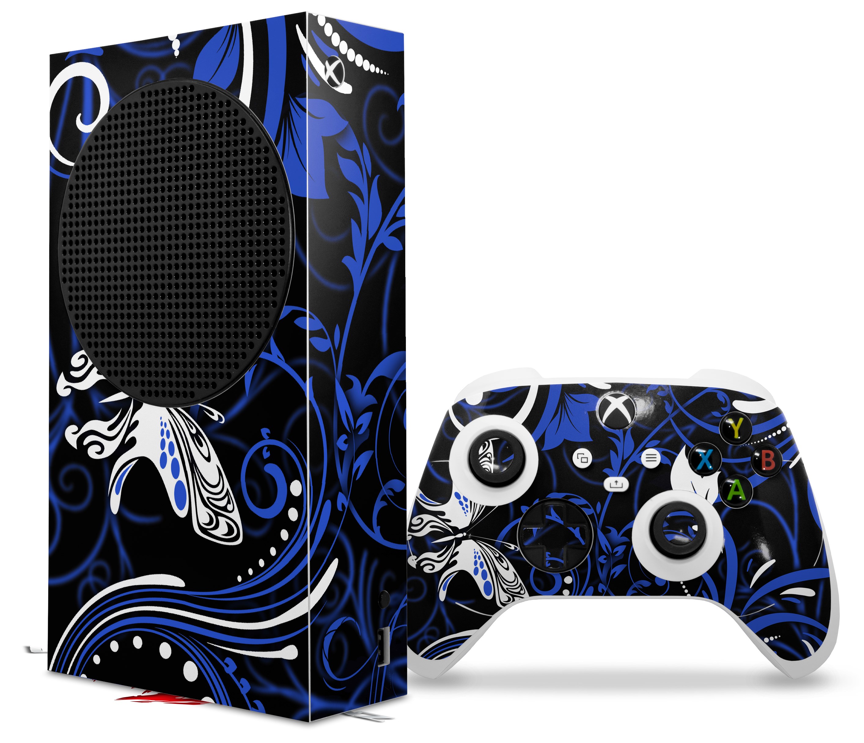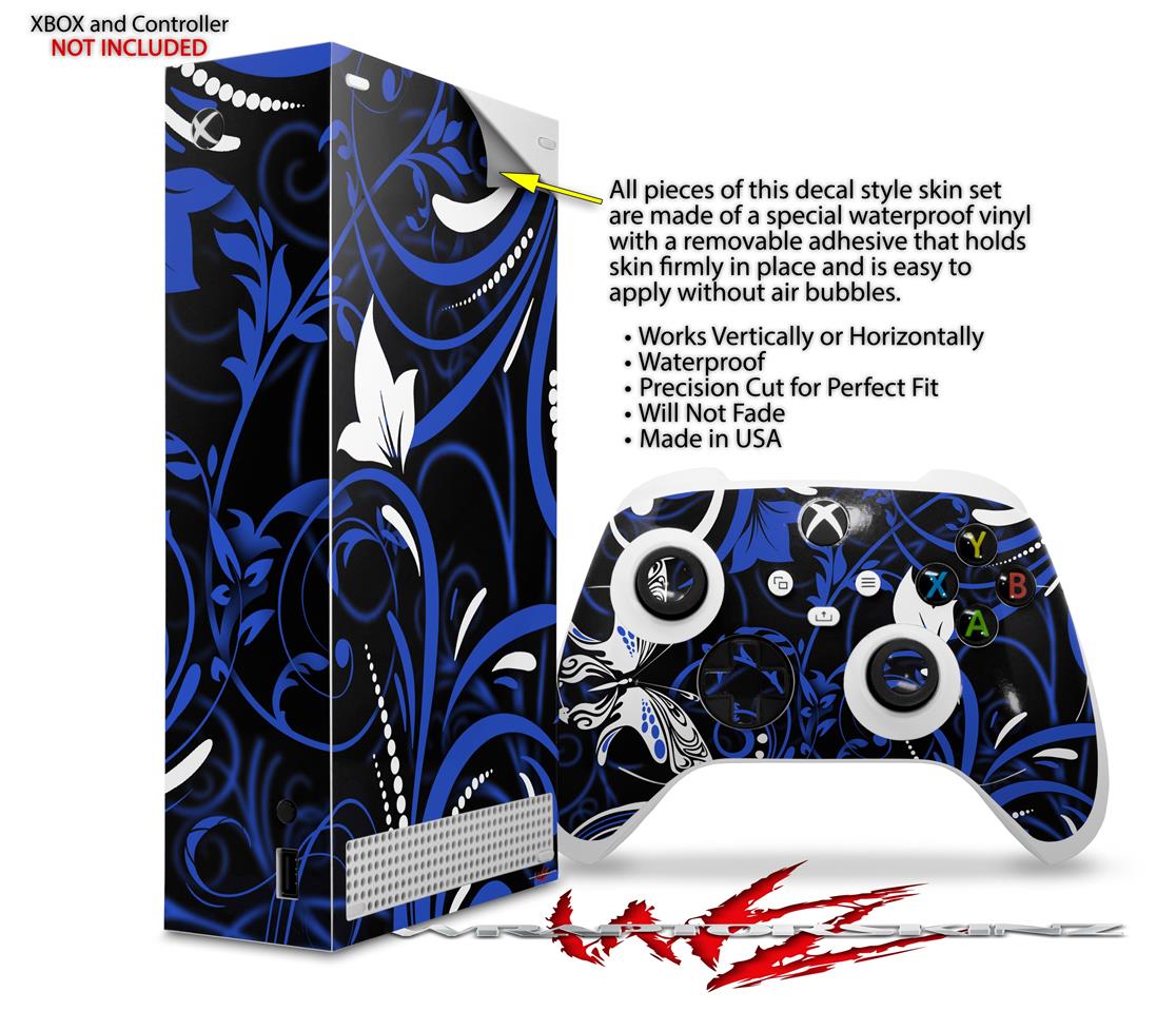 WraptorSkinz Skin Wrap compatible with the 2020 XBOX Series S Console and Controller Twisted Garden Blue and White (XBOX NOT INCLUDED)