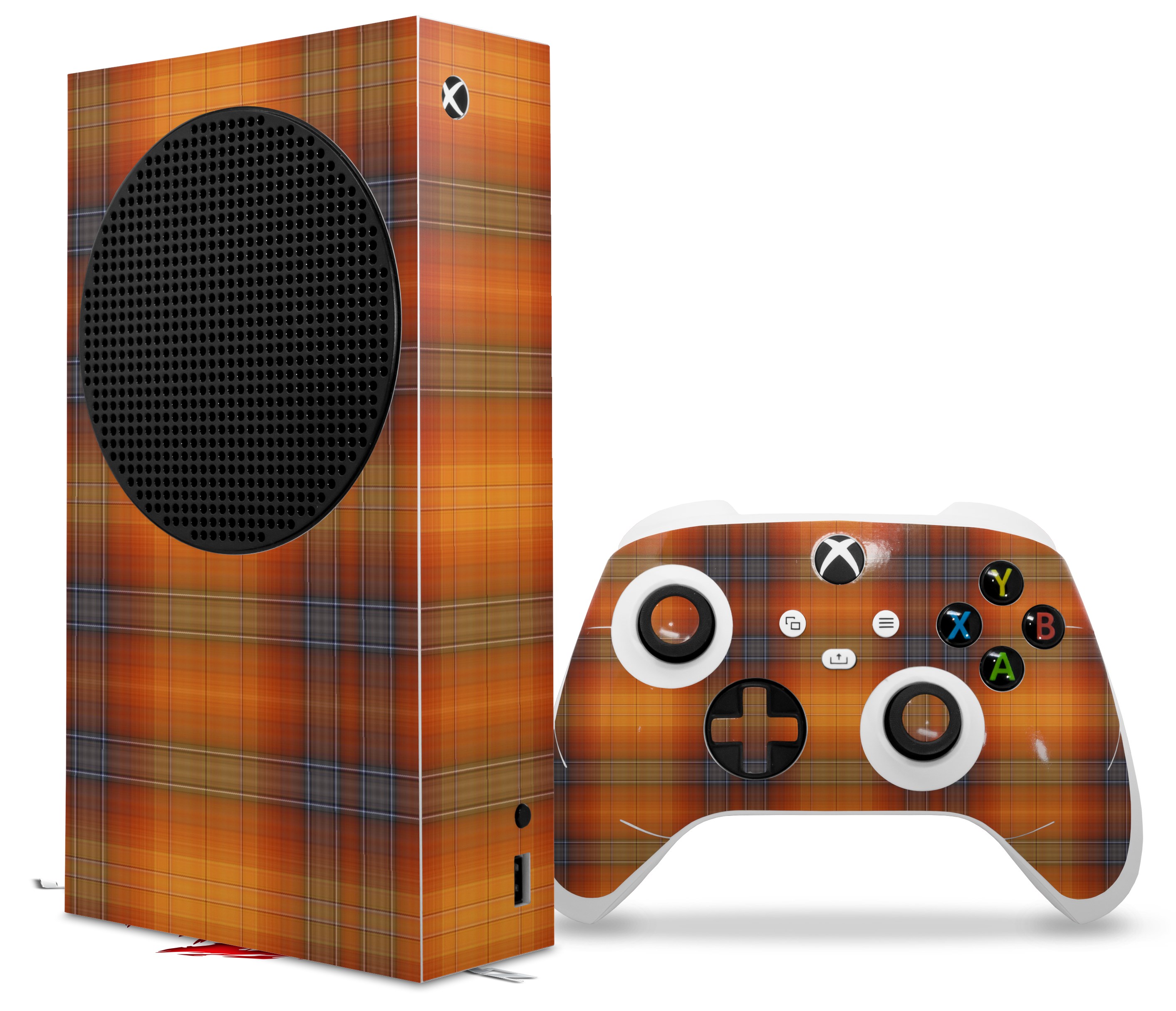 WraptorSkinz Skin Wrap compatible with the 2020 XBOX Series S Console and Controller Plaid Pumpkin Orange (XBOX NOT INCLUDED)