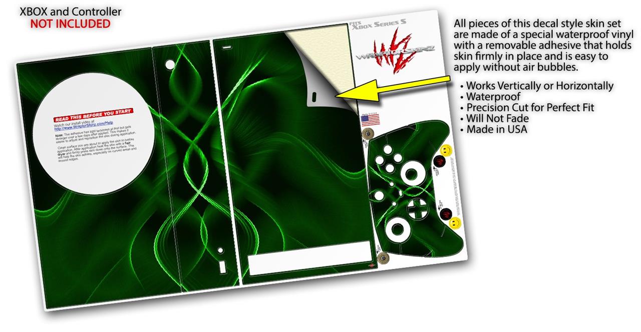 WraptorSkinz Skin Wrap compatible with the 2020 XBOX Series S Console and Controller Abstract 01 Green (XBOX NOT INCLUDED)