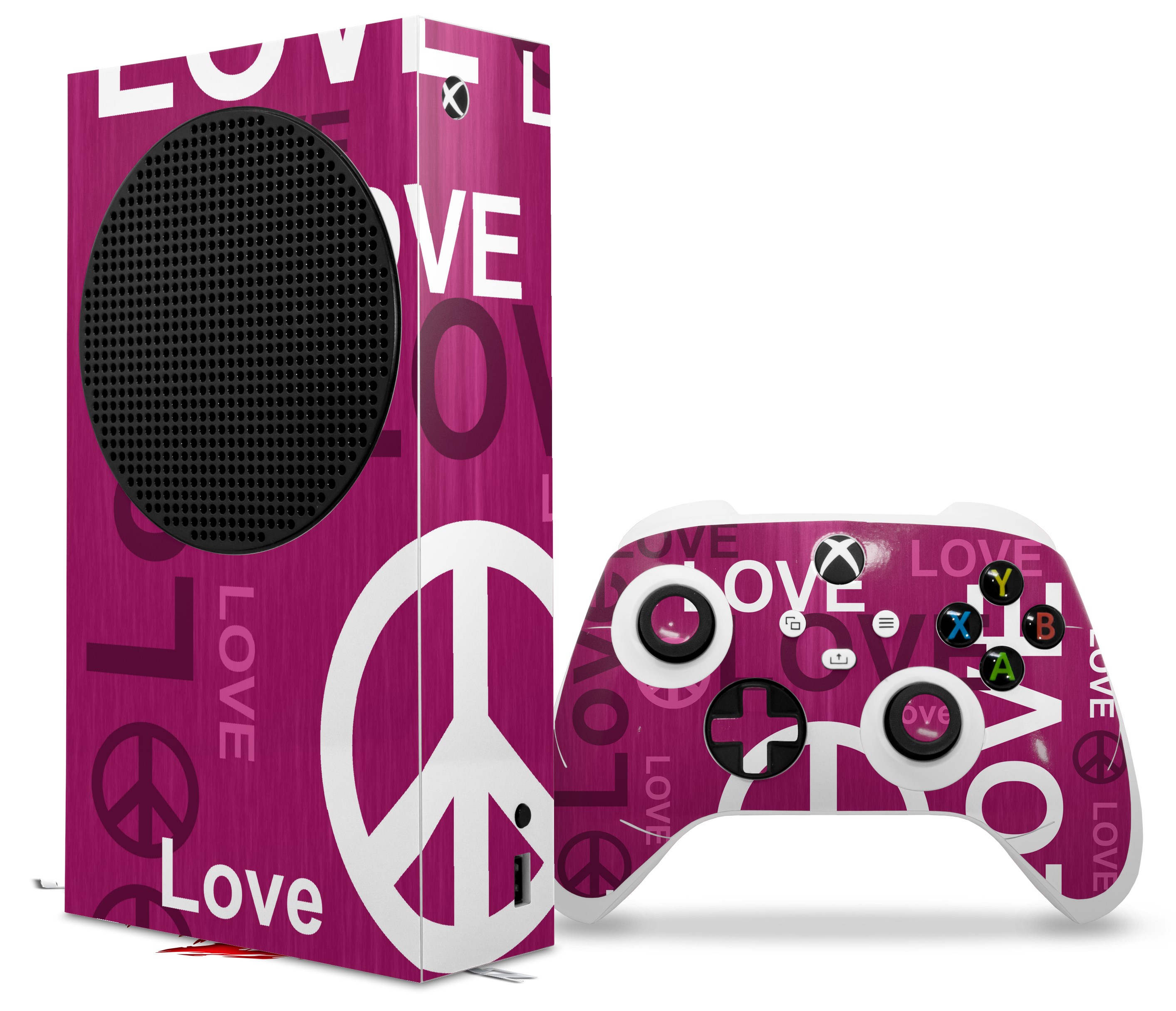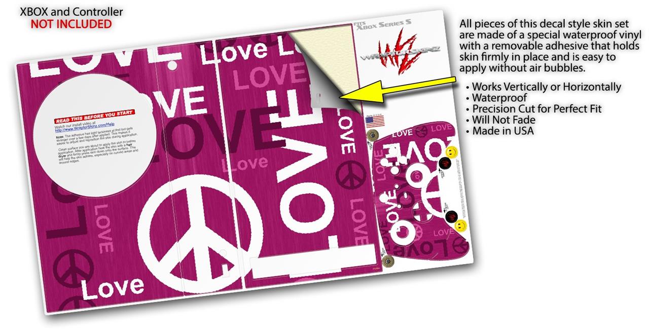 WraptorSkinz Skin Wrap compatible with the 2020 XBOX Series S Console and Controller Love and Peace Hot Pink (XBOX NOT INCLUDED)
