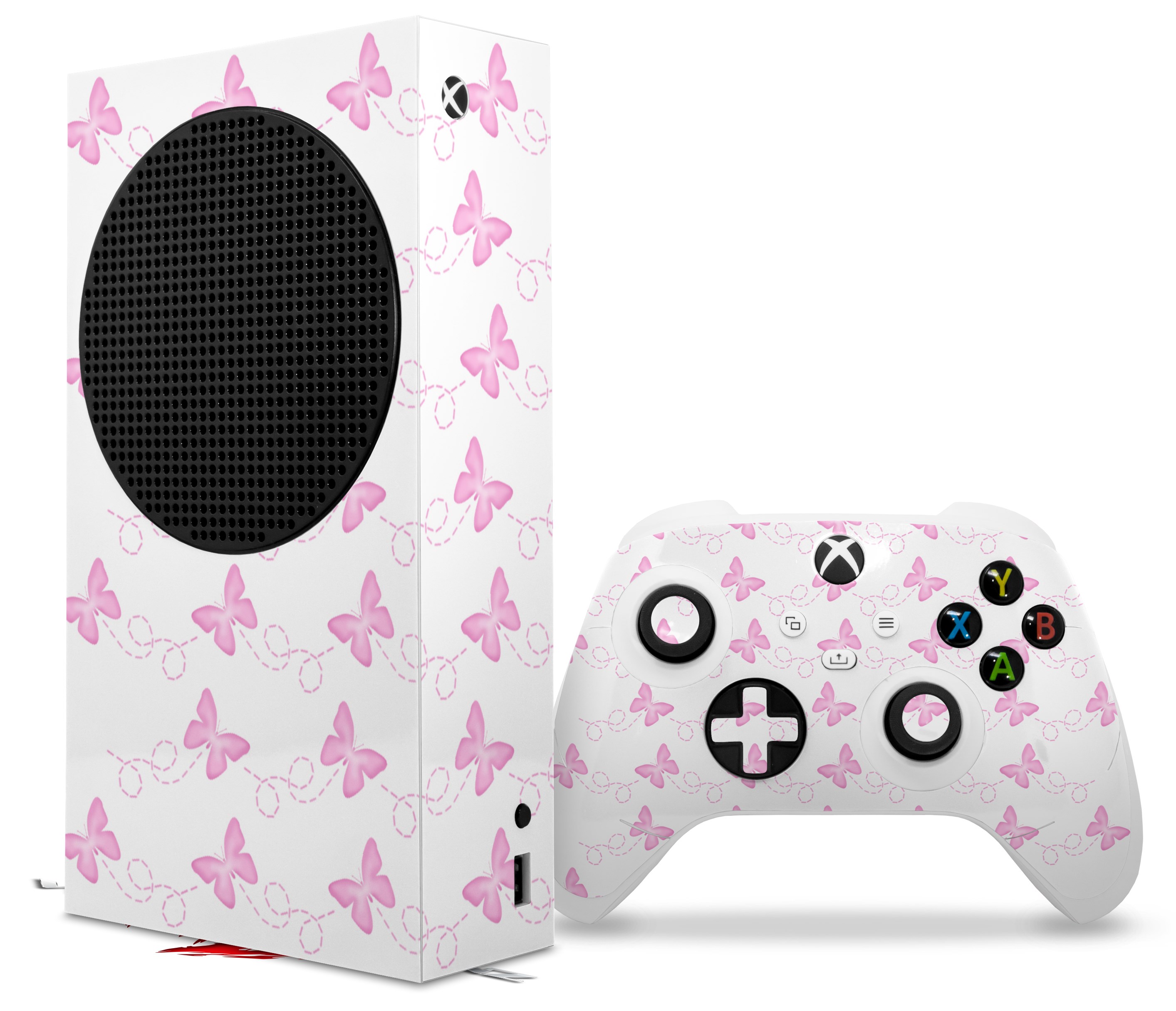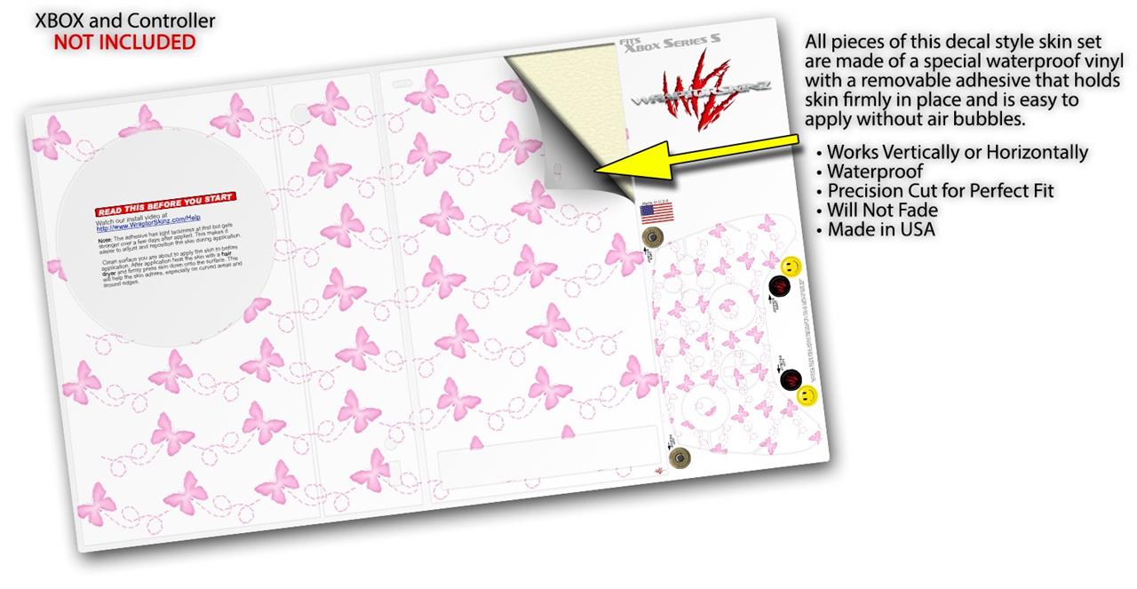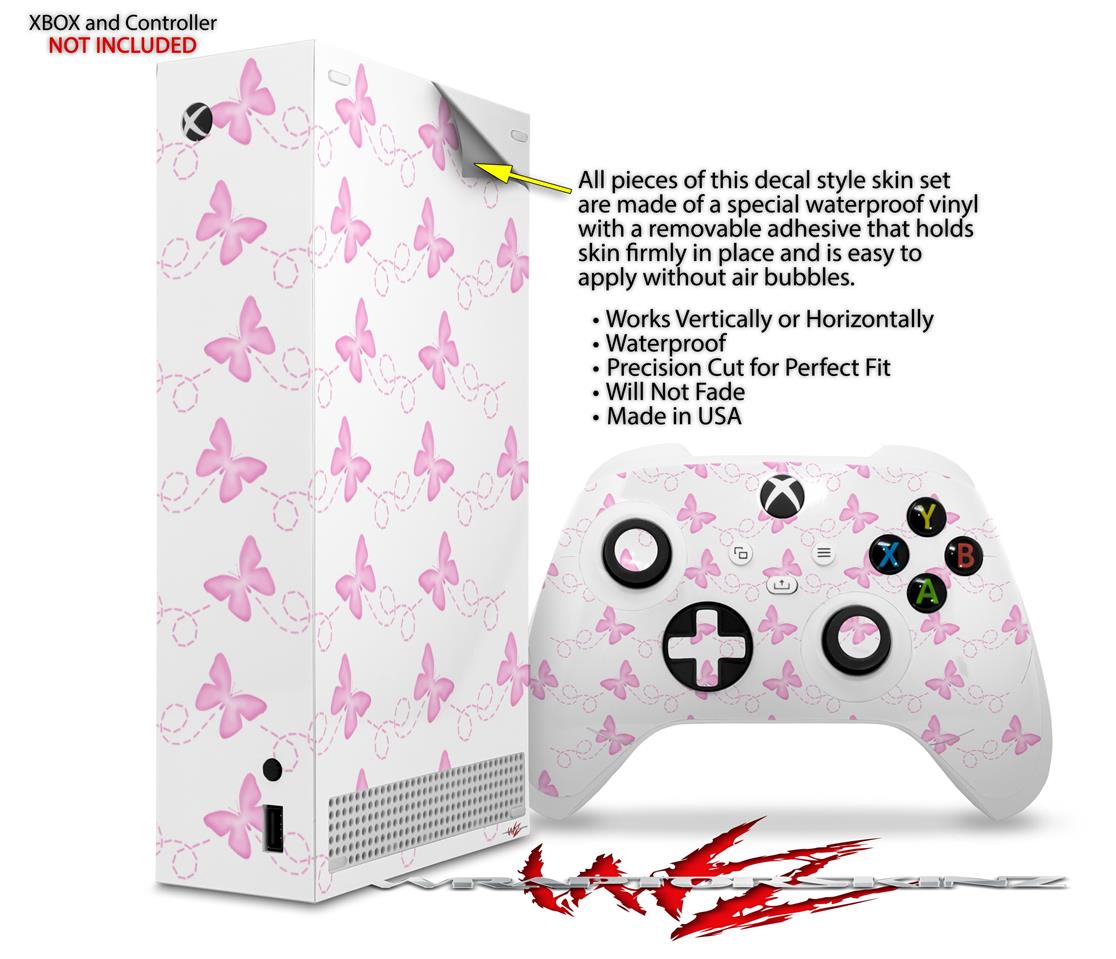 WraptorSkinz Skin Wrap compatible with the 2020 XBOX Series S Console and Controller Pastel Butterflies Pink on White (XBOX NOT INCLUDED)