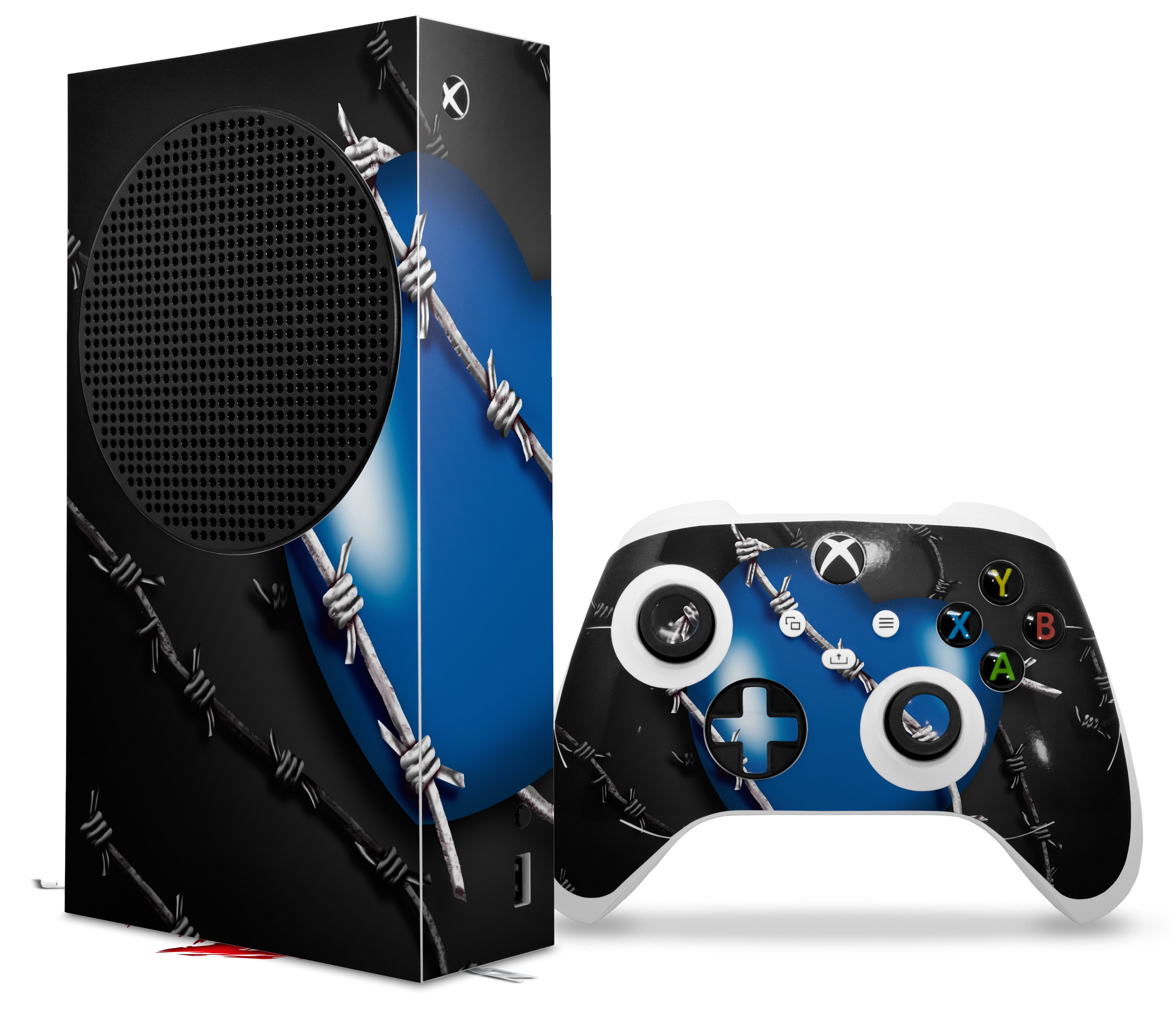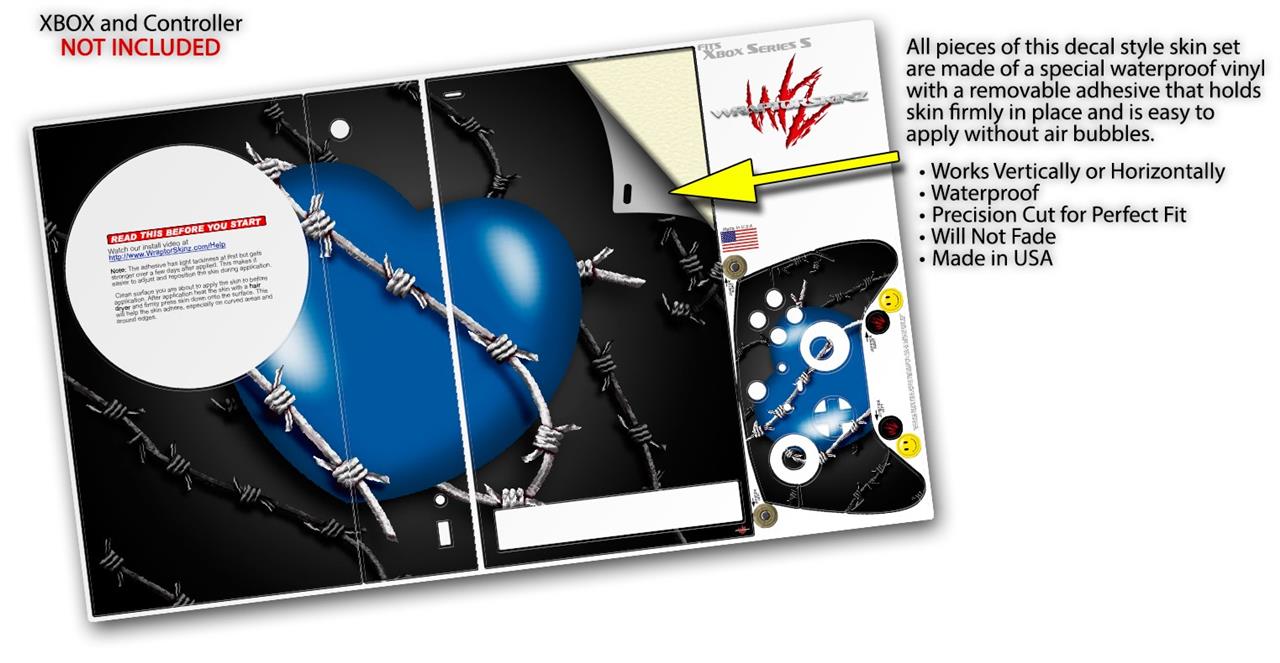 WraptorSkinz Skin Wrap compatible with the 2020 XBOX Series S Console and Controller Barbwire Heart Blue (XBOX NOT INCLUDED)