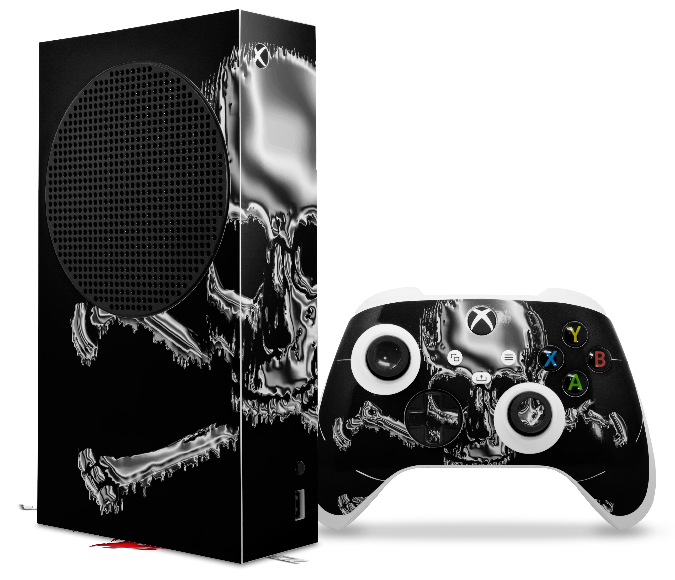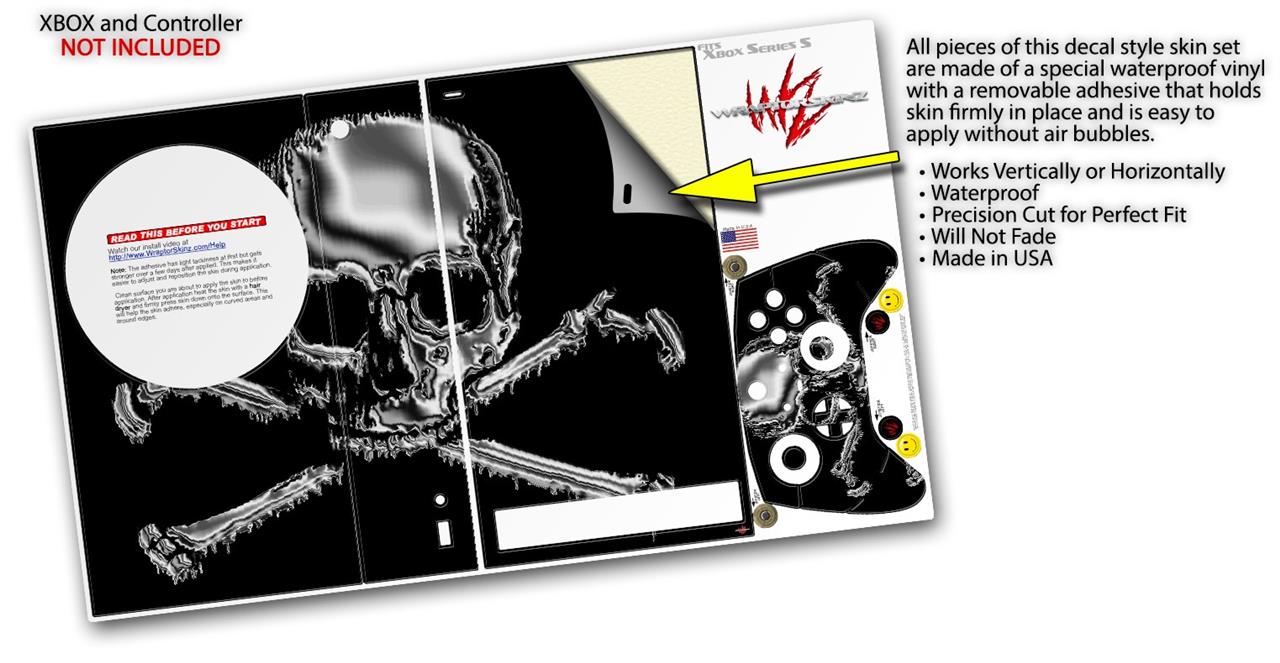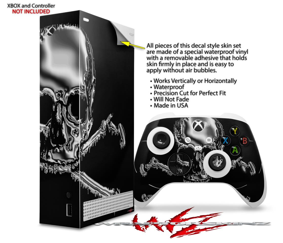 WraptorSkinz Skin Wrap compatible with the 2020 XBOX Series S Console and Controller Chrome Skull on Black (XBOX NOT INCLUDED)