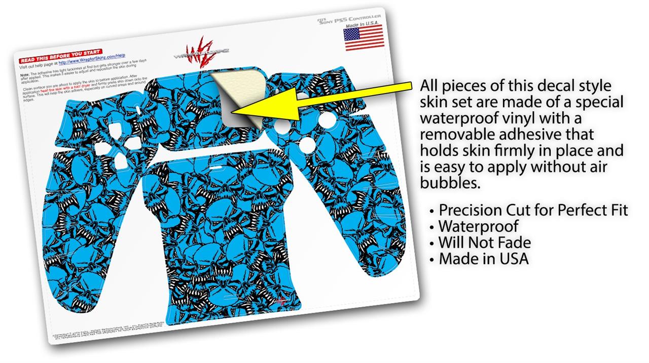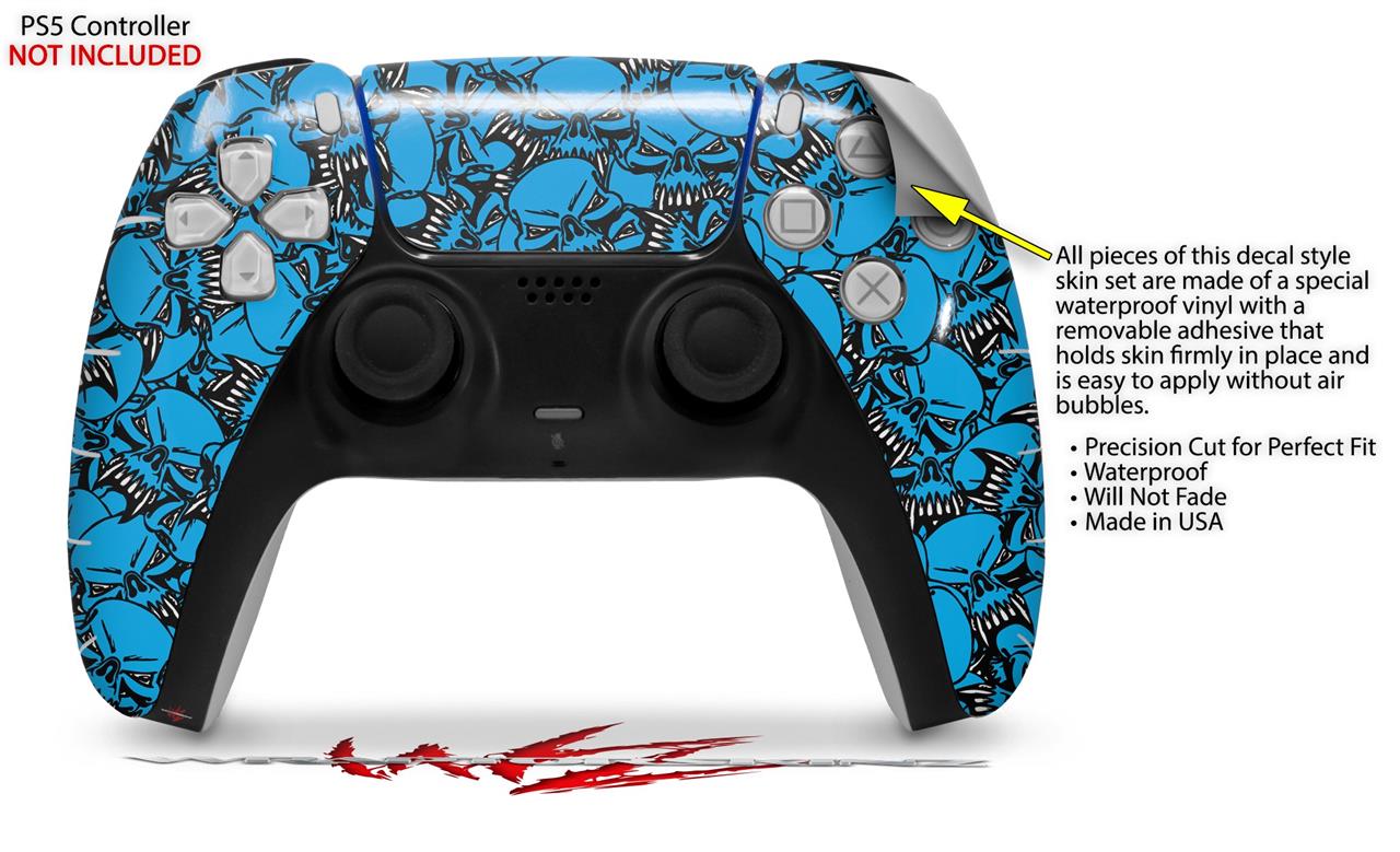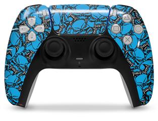 WraptorSkinz Skin Wrap compatible with the Sony PS5 DualSense Controller Scattered Skulls Neon Blue (CONTROLLER NOT INCLUDED)
