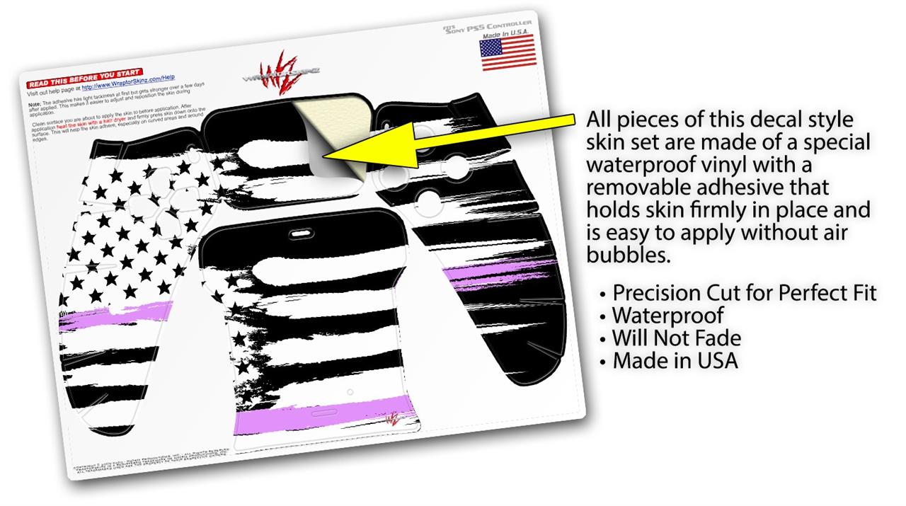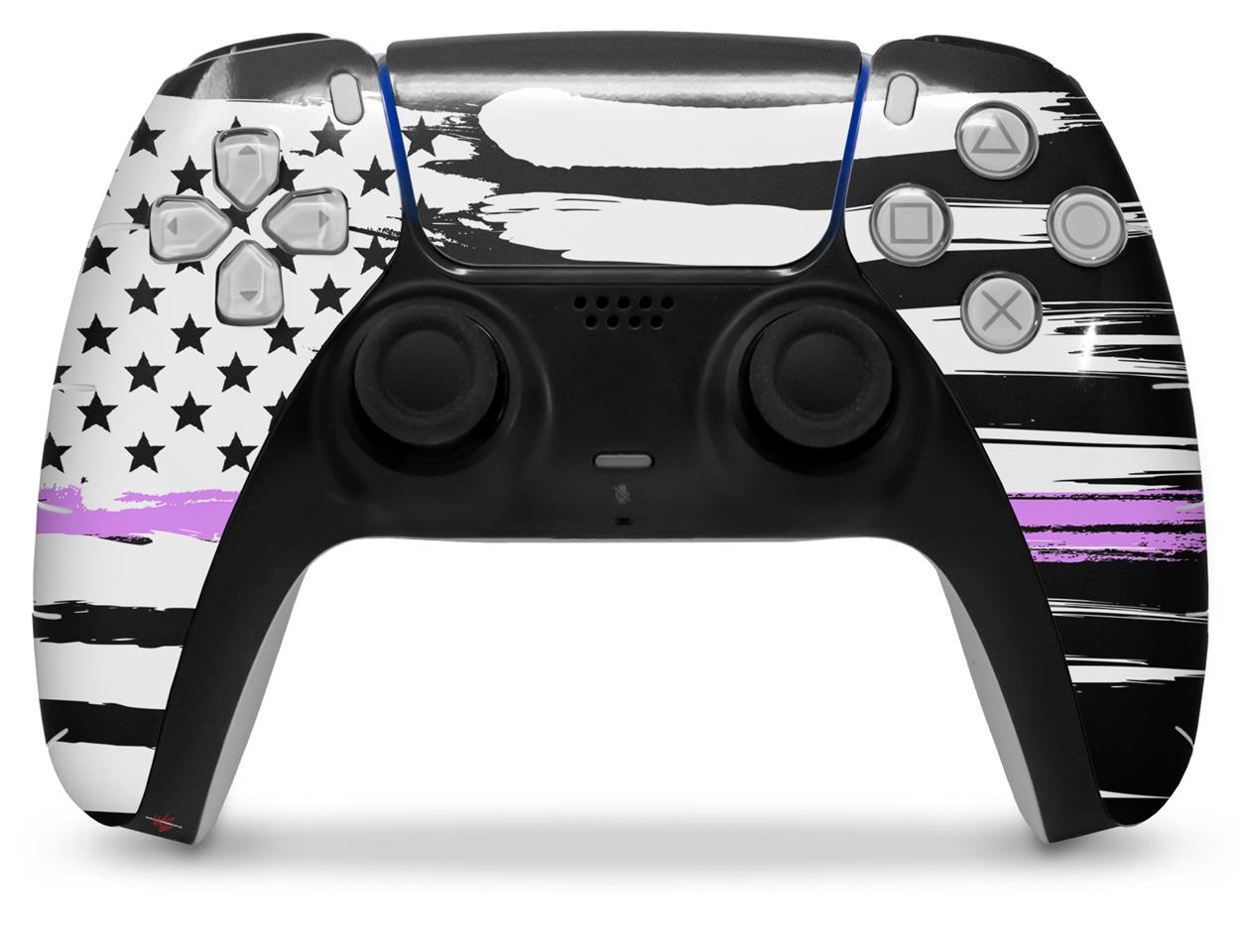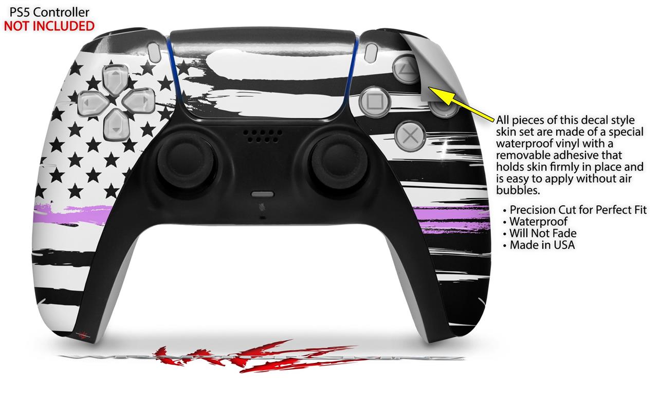 WraptorSkinz Skin Wrap compatible with the Sony PS5 DualSense Controller Brushed USA American Flag Pink Line (CONTROLLER NOT INCLUDED)