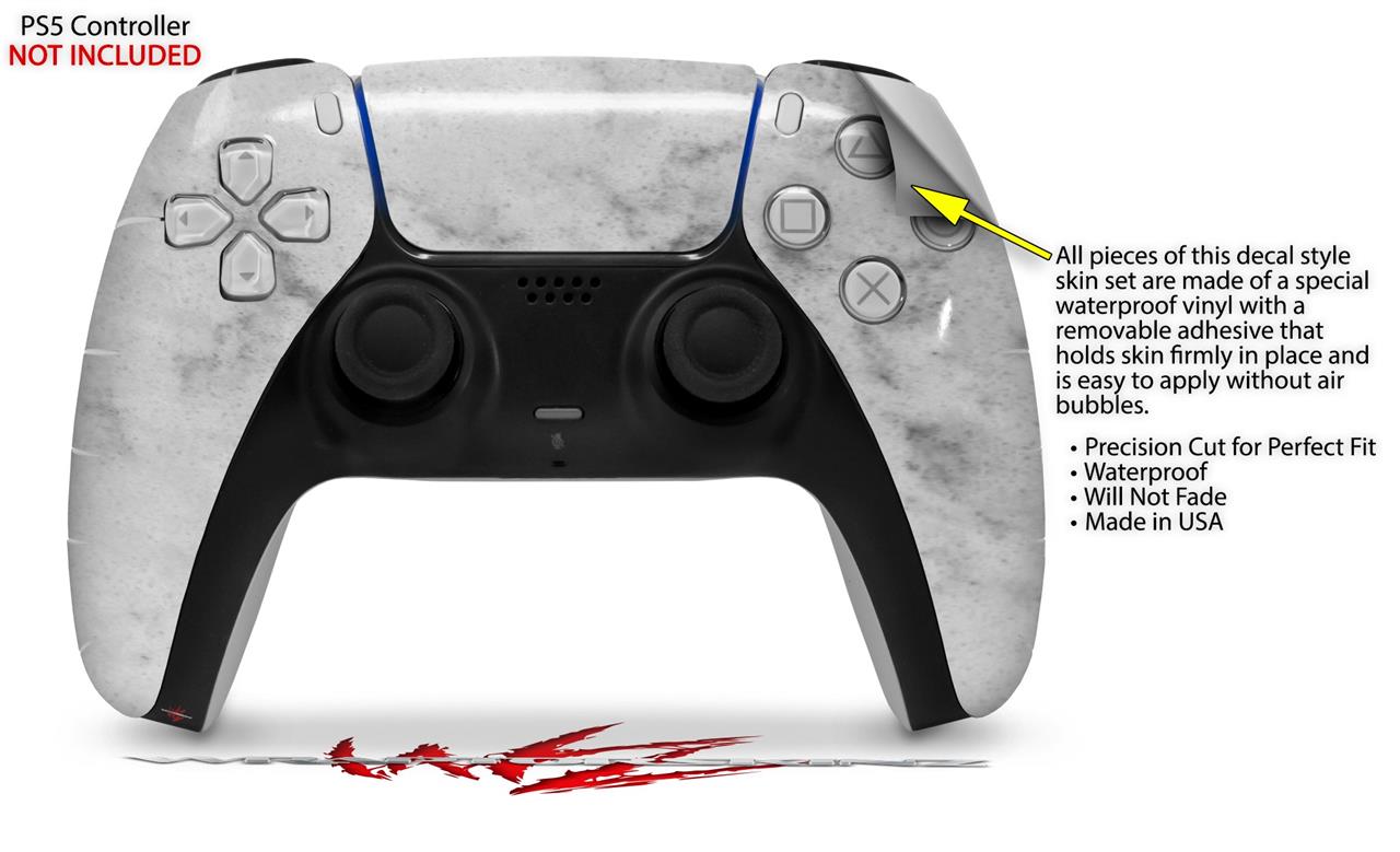WraptorSkinz Skin Wrap compatible with the Sony PS5 DualSense Controller Marble Granite 07 White Gray (CONTROLLER NOT INCLUDED)