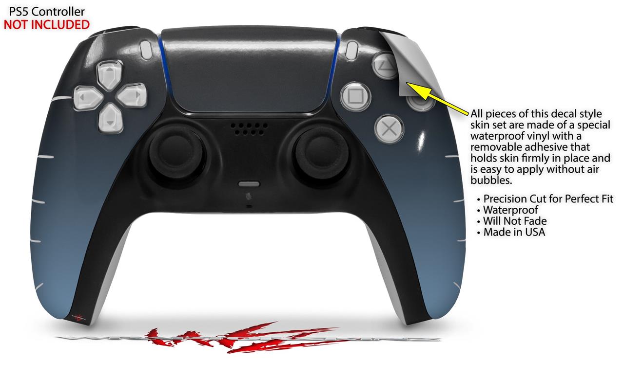 WraptorSkinz Skin Wrap compatible with the Sony PS5 DualSense Controller Smooth Fades Blue Dust Black (CONTROLLER NOT INCLUDED)