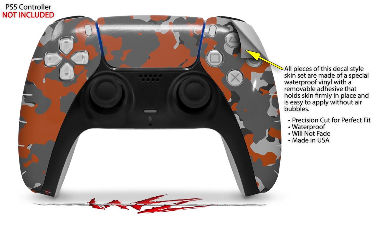 WraptorSkinz Skin Wrap compatible with the Sony PS5 DualSense Controller WraptorCamo Old School Camouflage Camo Orange Burnt (CONTROLLER NOT INCLUDED)
