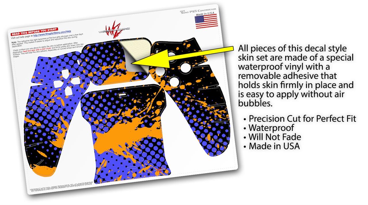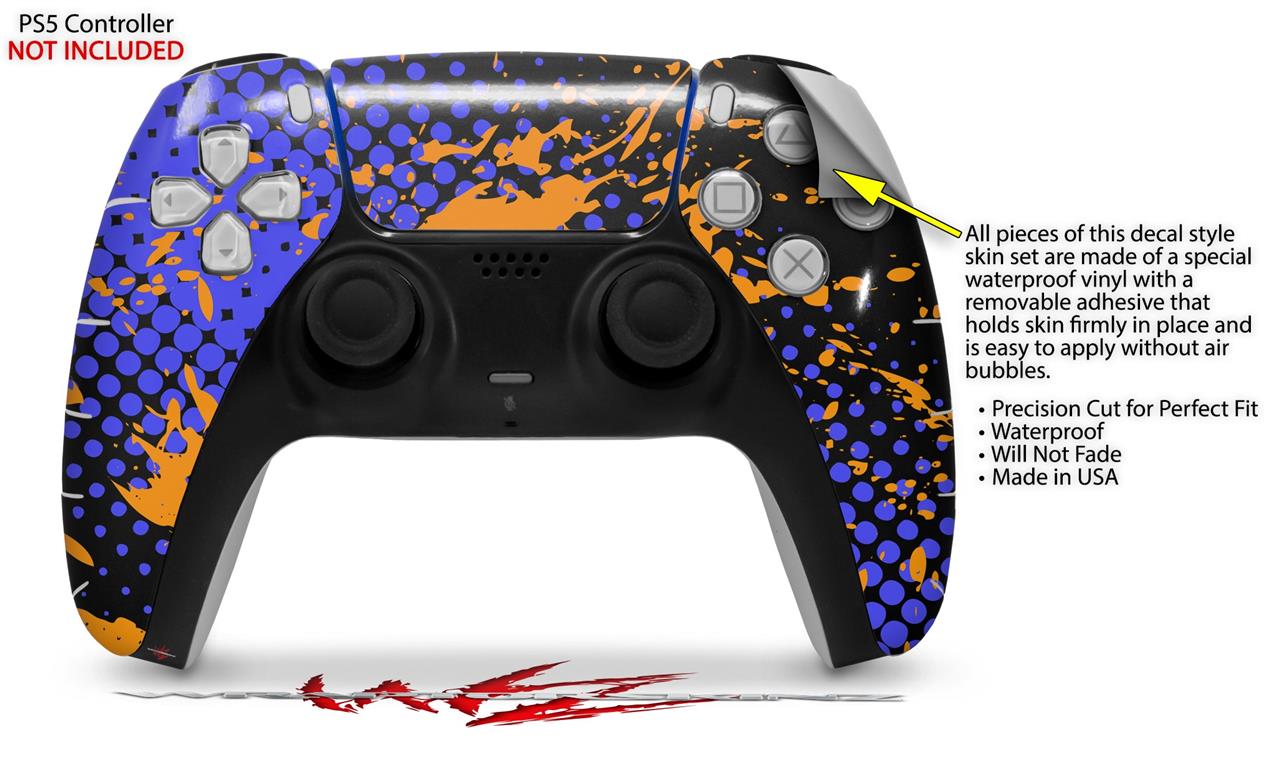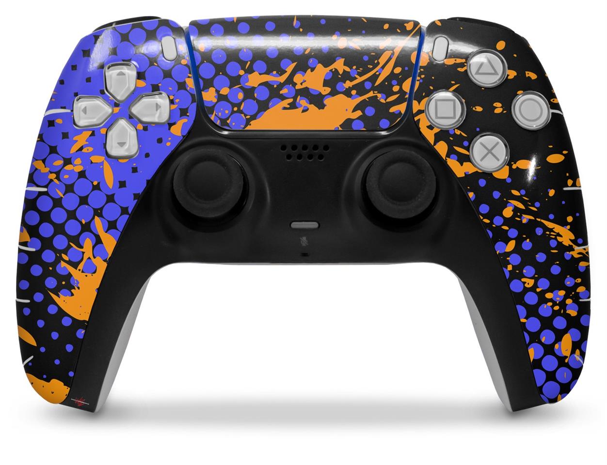 WraptorSkinz Skin Wrap compatible with the Sony PS5 DualSense Controller Halftone Splatter Orange Blue (CONTROLLER NOT INCLUDED)