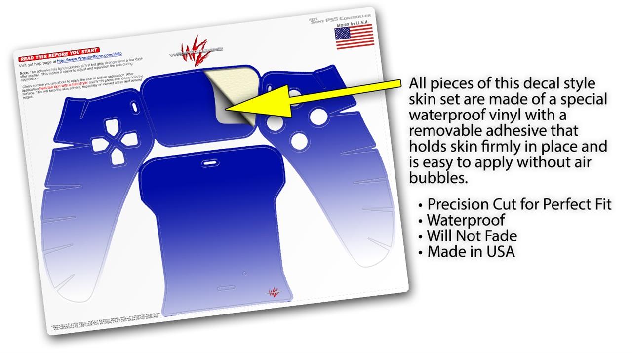 WraptorSkinz Skin Wrap compatible with the Sony PS5 DualSense Controller Smooth Fades White Blue (CONTROLLER NOT INCLUDED)