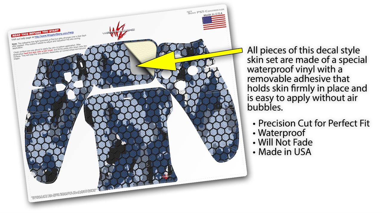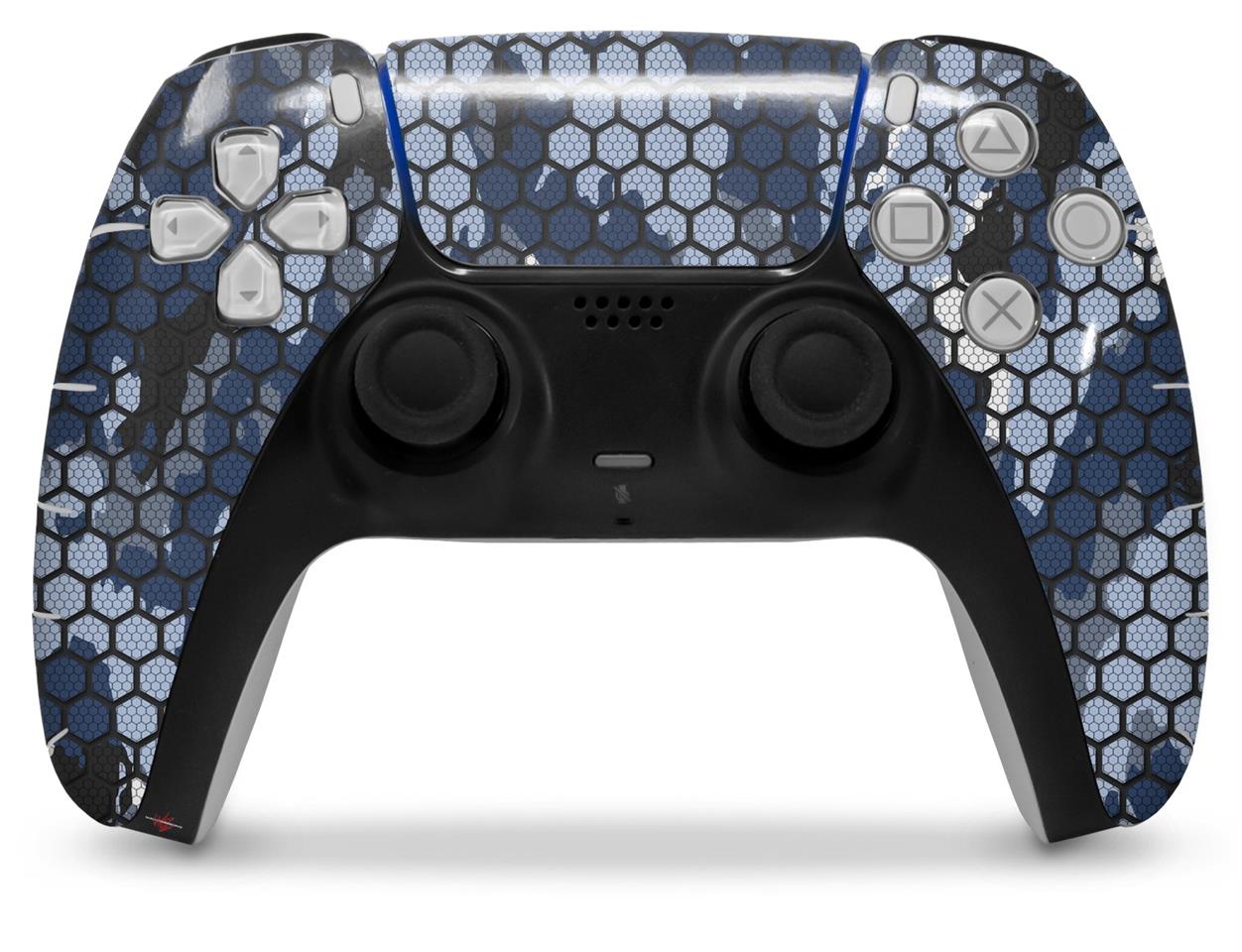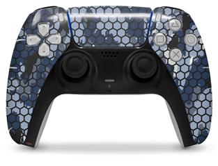 WraptorSkinz Skin Wrap compatible with the Sony PS5 DualSense Controller HEX Mesh Camo 01 Blue (CONTROLLER NOT INCLUDED)