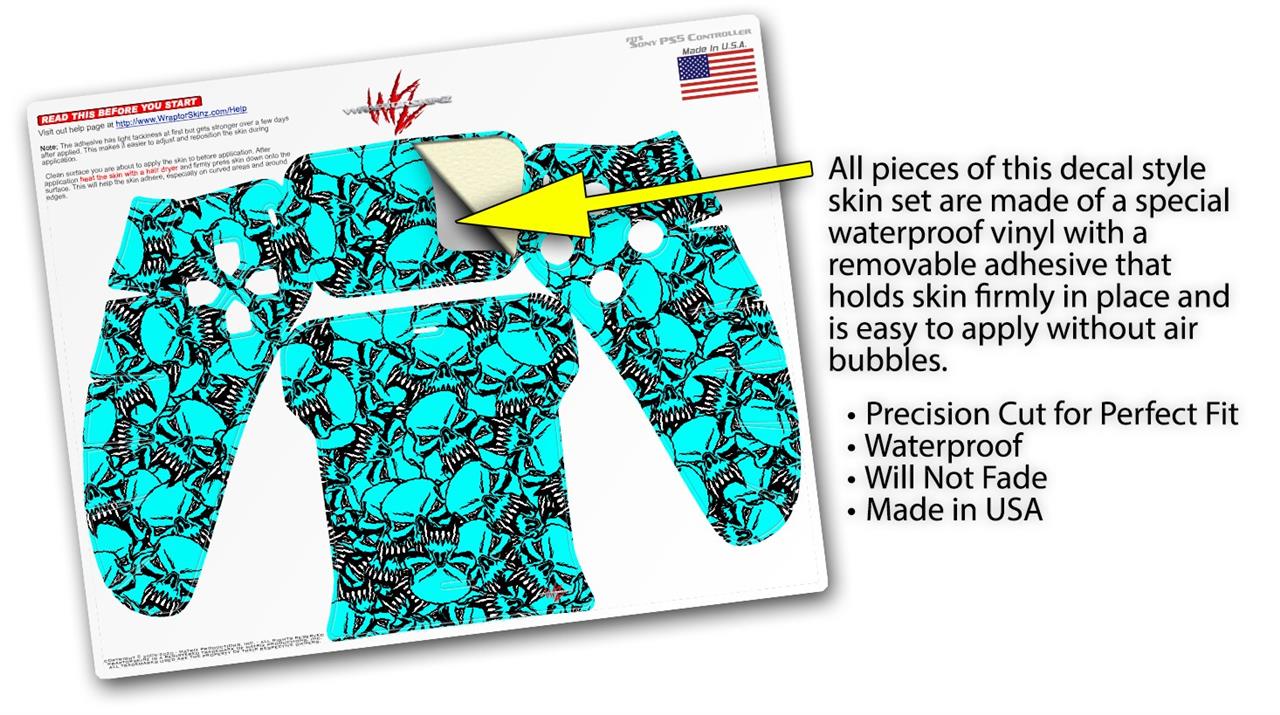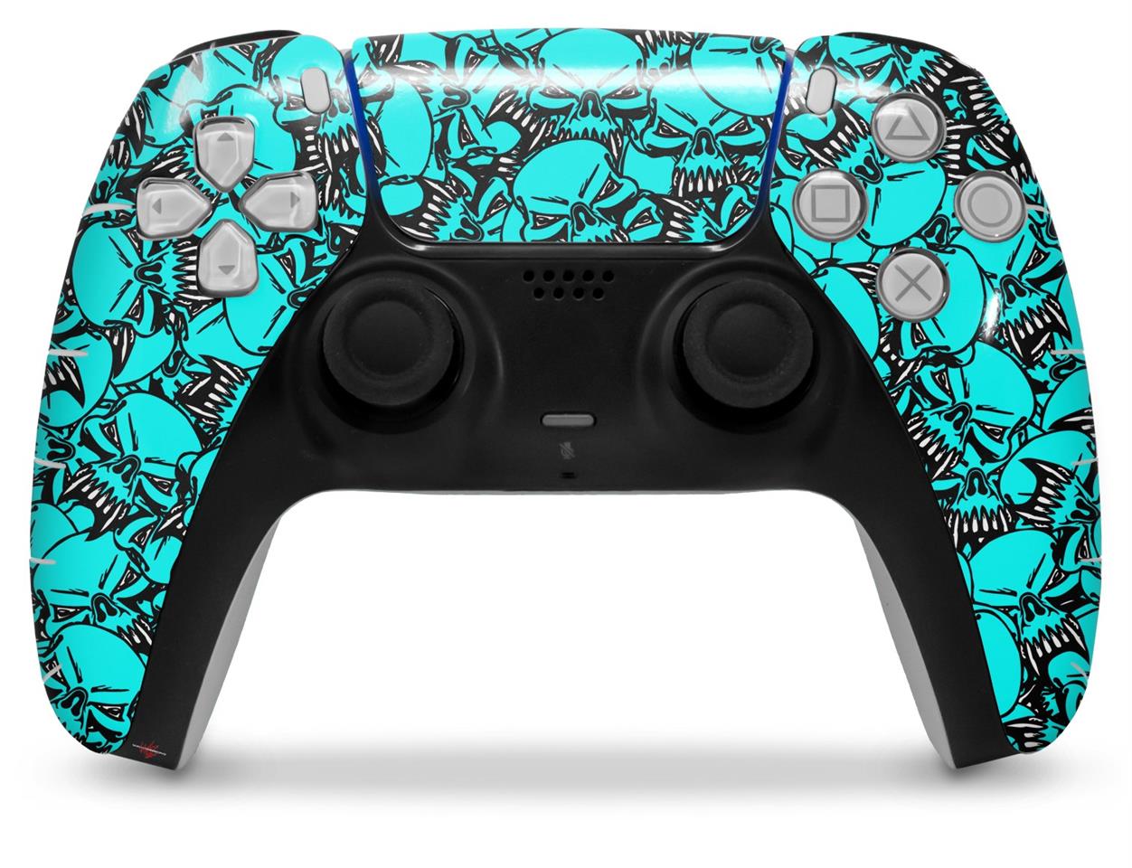WraptorSkinz Skin Wrap compatible with the Sony PS5 DualSense Controller Scattered Skulls Neon Teal (CONTROLLER NOT INCLUDED)