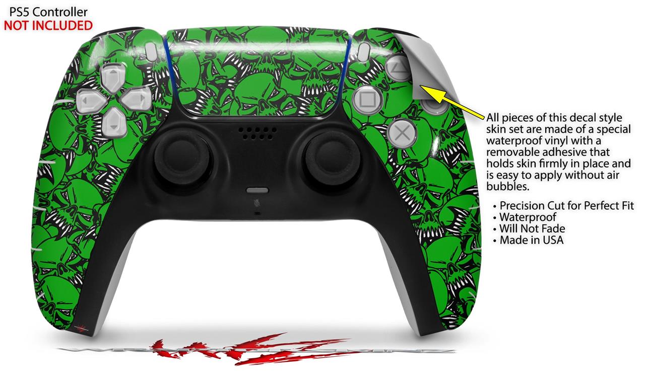 WraptorSkinz Skin Wrap compatible with the Sony PS5 DualSense Controller Scattered Skulls Green (CONTROLLER NOT INCLUDED)