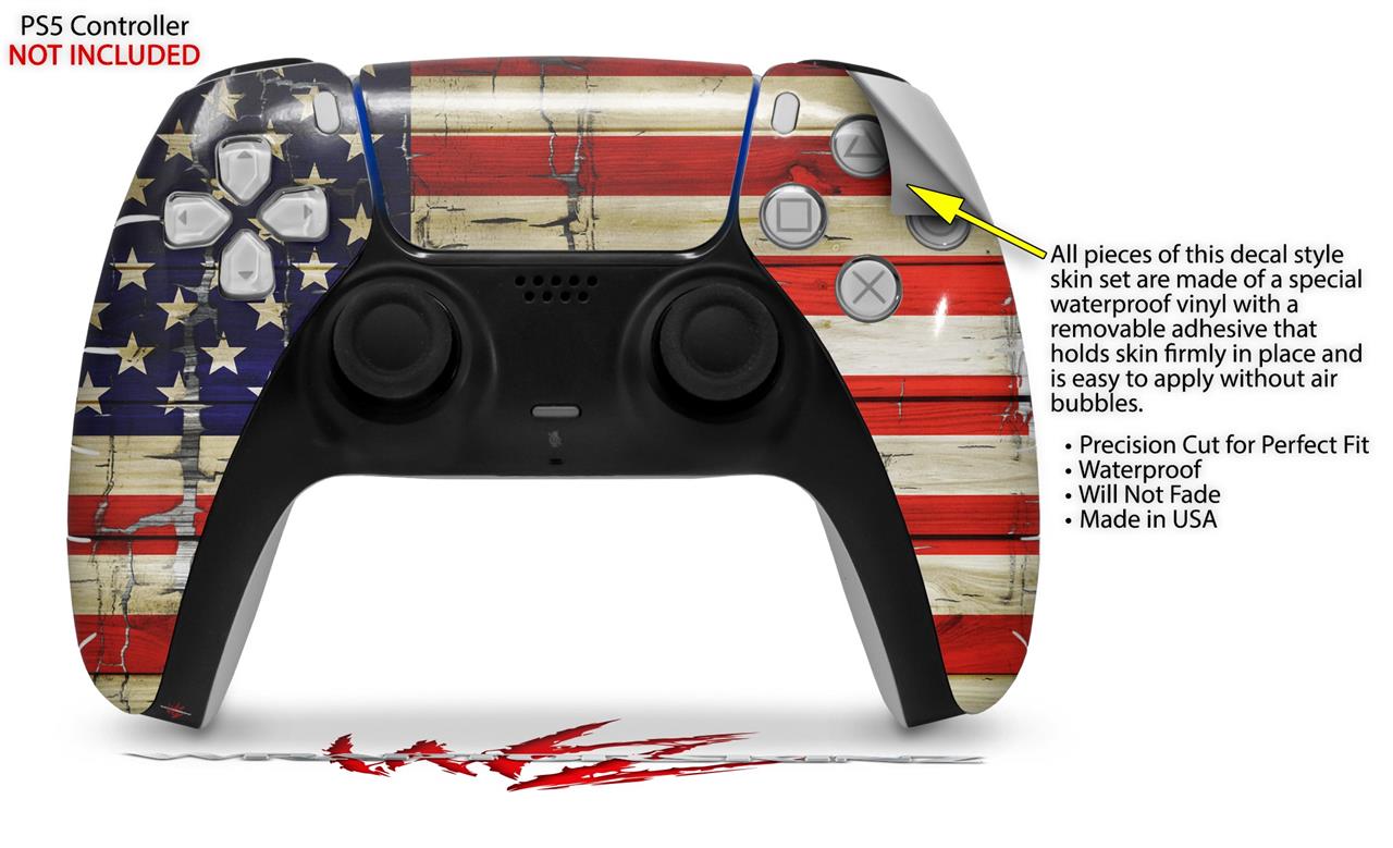WraptorSkinz Skin Wrap compatible with the Sony PS5 DualSense Controller Painted Faded and Cracked USA American Flag (CONTROLLER NOT INCLUDED)