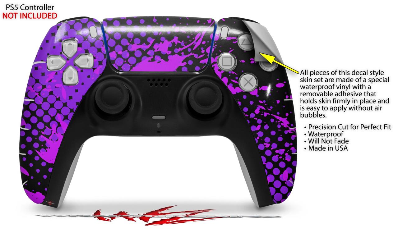 WraptorSkinz Skin Wrap compatible with the Sony PS5 DualSense Controller Halftone Splatter Hot Pink Purple (CONTROLLER NOT INCLUDED)