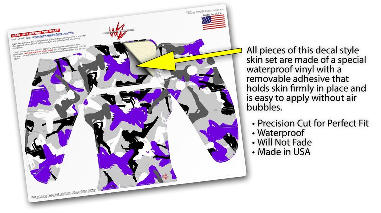 WraptorSkinz Skin Wrap compatible with the Sony PS5 DualSense Controller Sexy Girl Silhouette Camo Purple (CONTROLLER NOT INCLUDED)