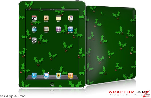 iPad Skin - Christmas Holly Leaves on Green